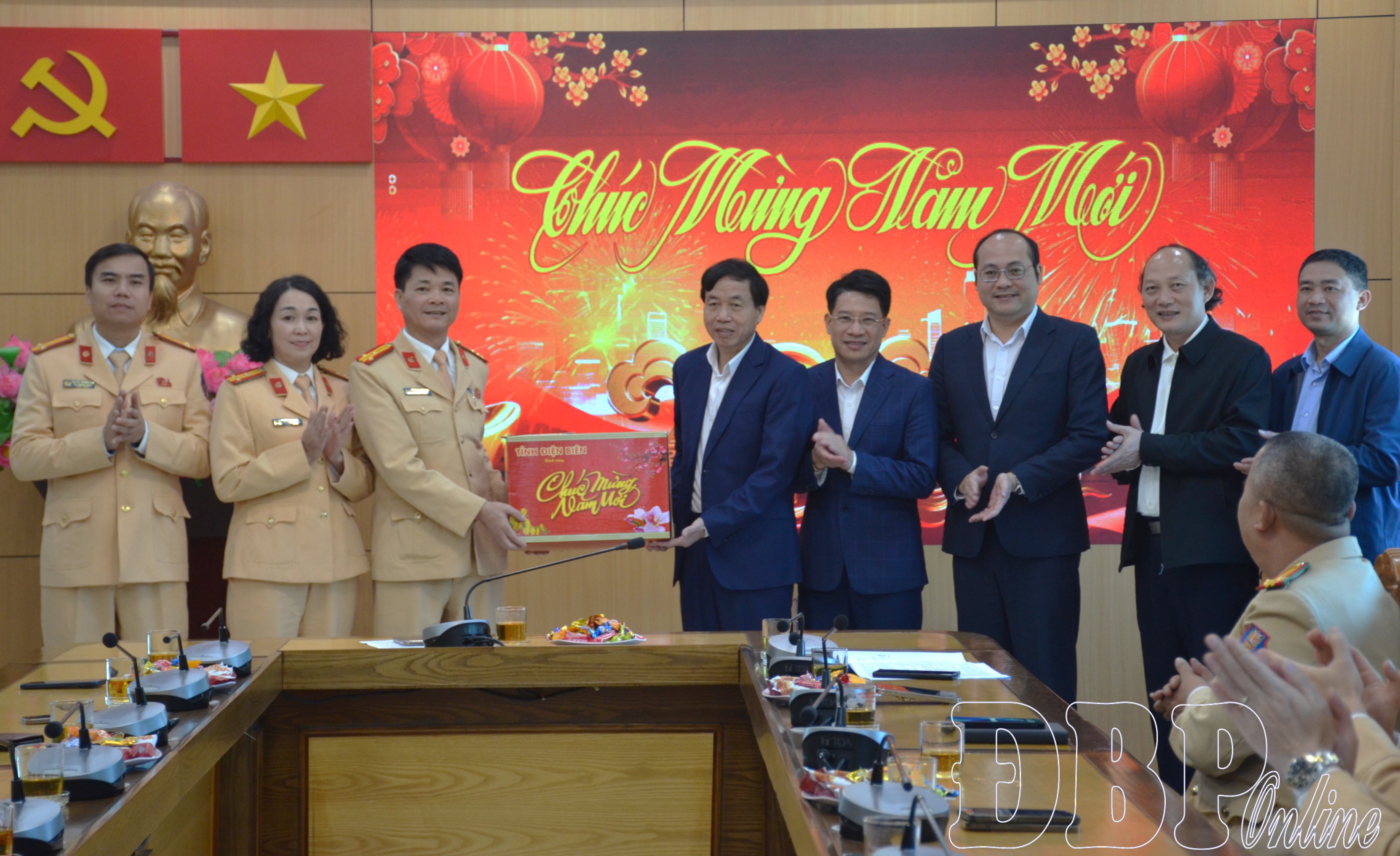 Chủ tịch UBND tỉnh Lê Văn Lương tặng quà tết Phòng CSGT.