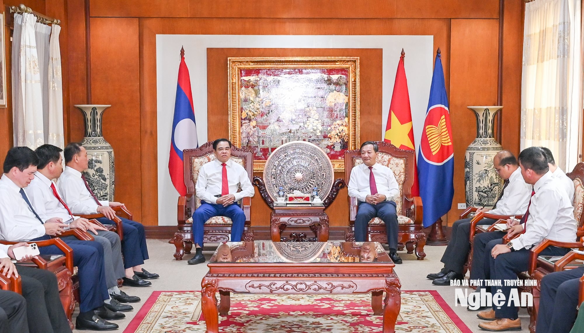 Đại sứ đặc mệnh toàn quyền nước CHXHCN Việt Nam tại Lào Nguyễn Minh Tâm bày tỏ vui mừng khi đón đoàn công tác tỉnh Nghệ An và đánh giá cao tính chủ động, hiệu quả trong hoạt động đối ngoại của tỉnh đối với các địa phương Lào thời gian qua. Đại sứ Nguyễn Minh Tâm khẳng định, Đại sứ quán Việt Nam tại Lào sẽ luôn đồng hành, hỗ trợ tích cực để, thúc đẩy đầu tư và hỗ trợ doanh nghiệp, đặc biệt là sự gắn kết chặt chẽ giữa các địa phương như tỉnh Nghệ An với các tỉnh của Lào, góp phần làm sâu sắc hơn nữa quan hệ hợp tác toàn diện Việt Nam - Lào trong giai đoạn tới.