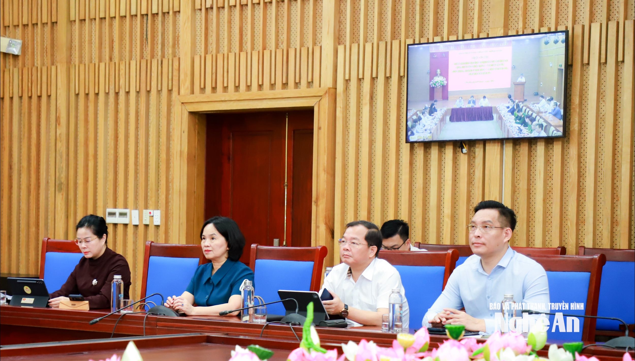 Các đại biểu dự hội nghị tại điểm cầu UBND tỉnh Nghệ An. Ảnh: Thành Duy