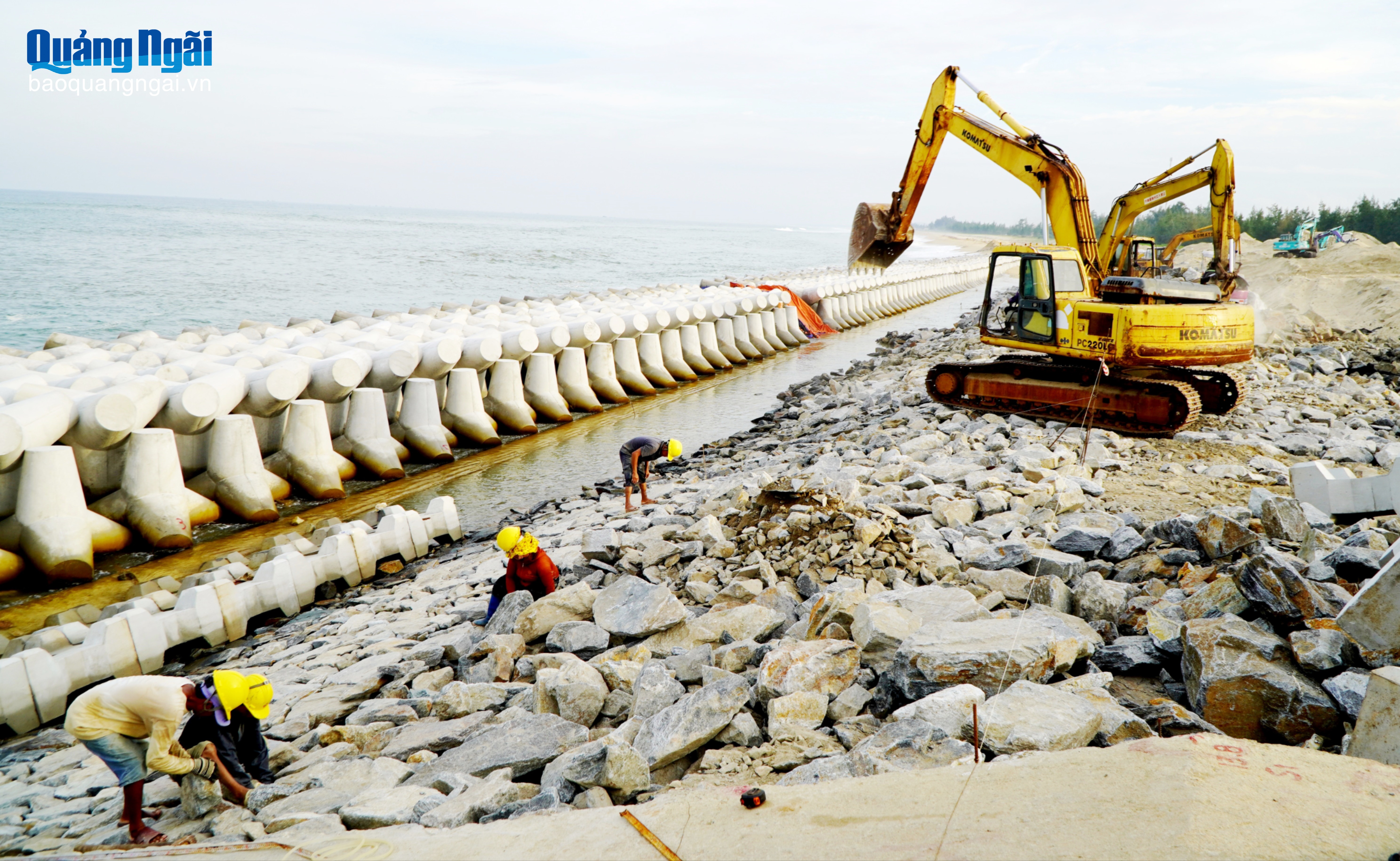 Dự án Khắc phục, chống sạt lở bờ biển khu vực xã An Phú thi công, giải ngân vượt tiến độ.