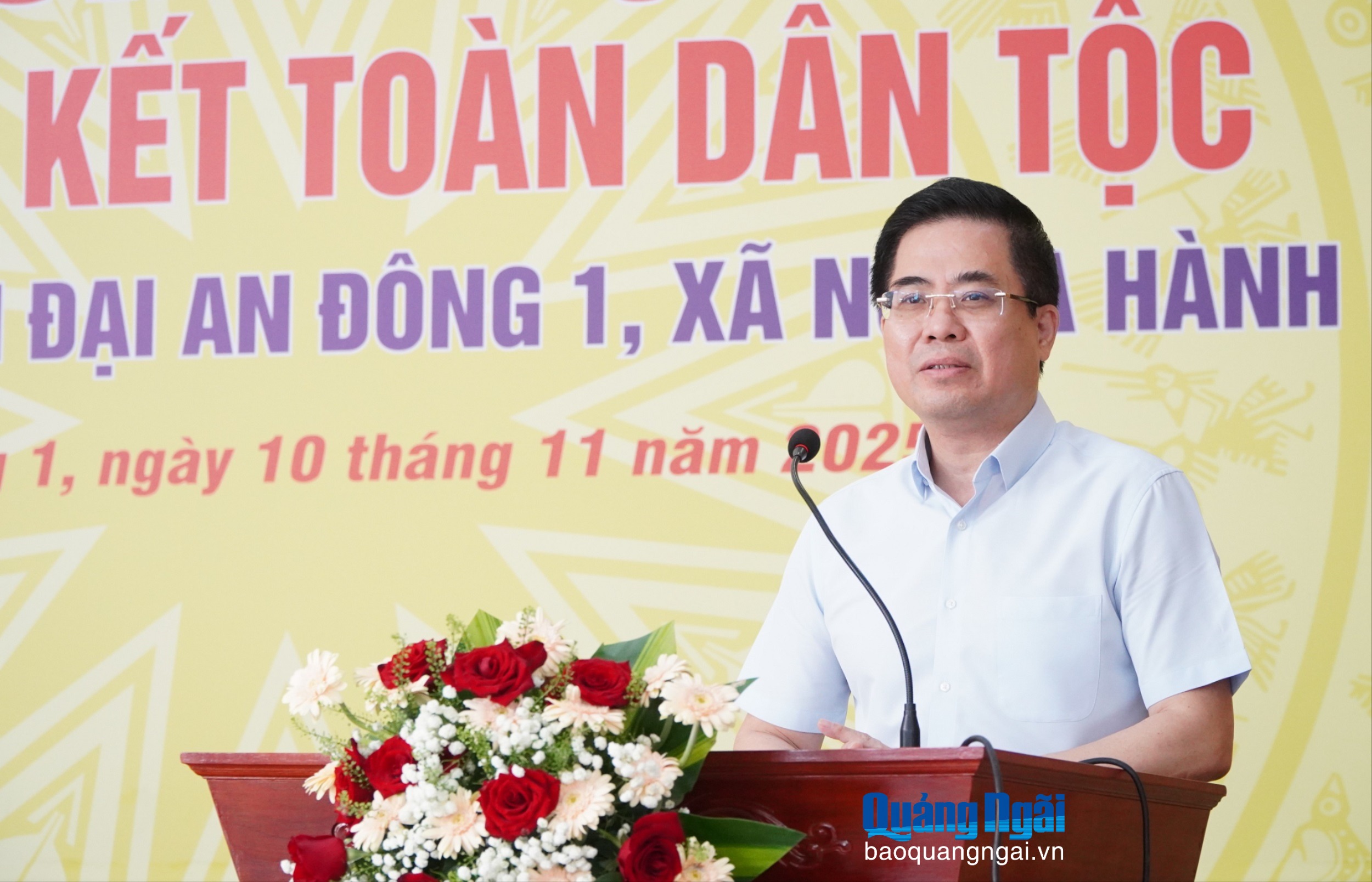 Phó Bí thư Tỉnh ủy, Chủ tịch UBND tỉnh Nguyễn Hoàng Giang nhấn mạnh, trong thời gian tới, Tỉnh ủy, HĐND, UBND, Ủy ban MTTQ Việt Nam tỉnh sẽ tiếp tục quan tâm, tạo điều kiện để xã Nghĩa Hành nói chung, thôn Đại An Đông 1 nói riêng phát triển nhanh và bền vững.