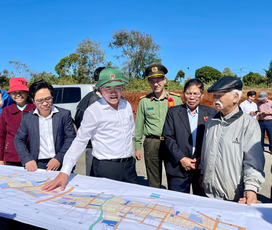 Chủ tịch UBND tỉnh nhấn mạnh: Hiện nay, dù tiến độ thi công rất gấp, song phải đắp đất thật kỹ lưỡng tại những vị trí san nền để đảm bảo về yêu cầu kỹ thuật.