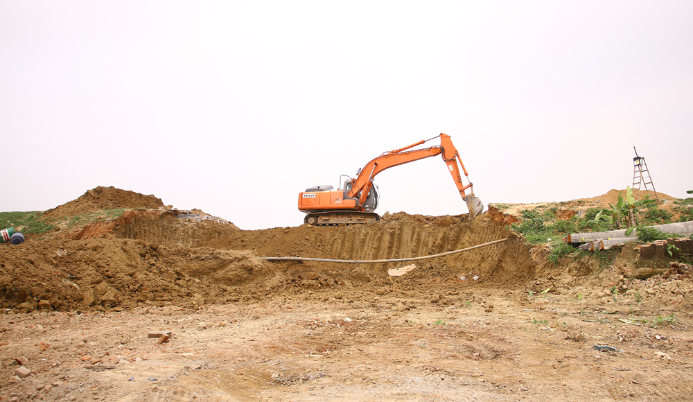 Thi công xây dựng khẩn cấp trạm bơm Cẩm Bào tại K20+300 đê tả Cầu.