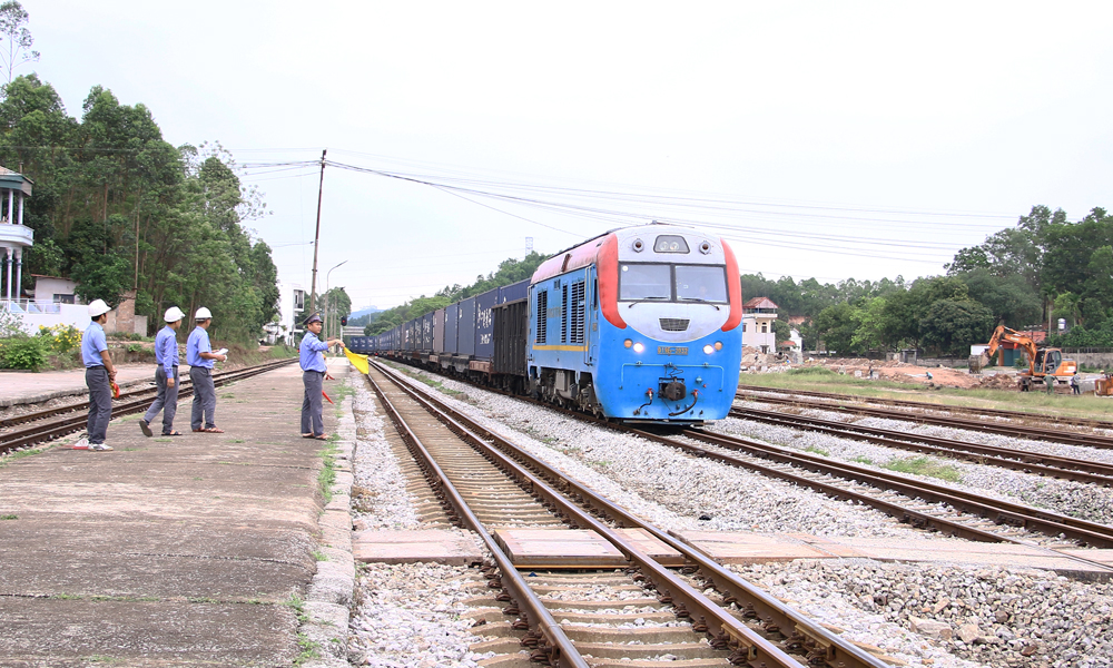 Tàu vận chuyển hàng hóa qua ga Kép.