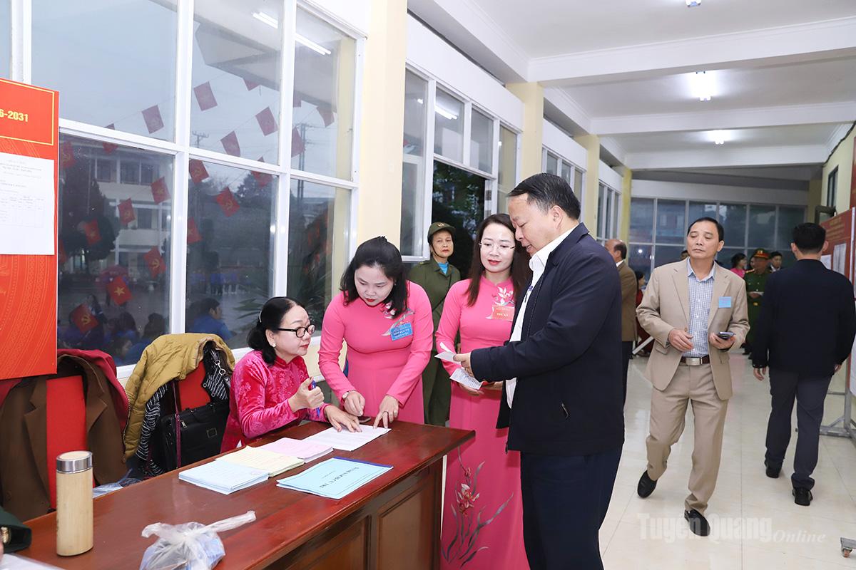 Lễ khai mạc bầu cử tại khu vực bỏ phiếu số 7, đơn vị bầu cử số 4, phường Hà Giang 1 diễn ra trong không khí trang nghiêm, phấn khởi. Sau khi nghe công bố nội quy, quy chế bầu cử, Chủ tịch UBND tỉnh Phan Huy Ngọc cùng các cử tri đã tiến hành bỏ phiếu, thực hiện quyền và nghĩa vụ của công dân.