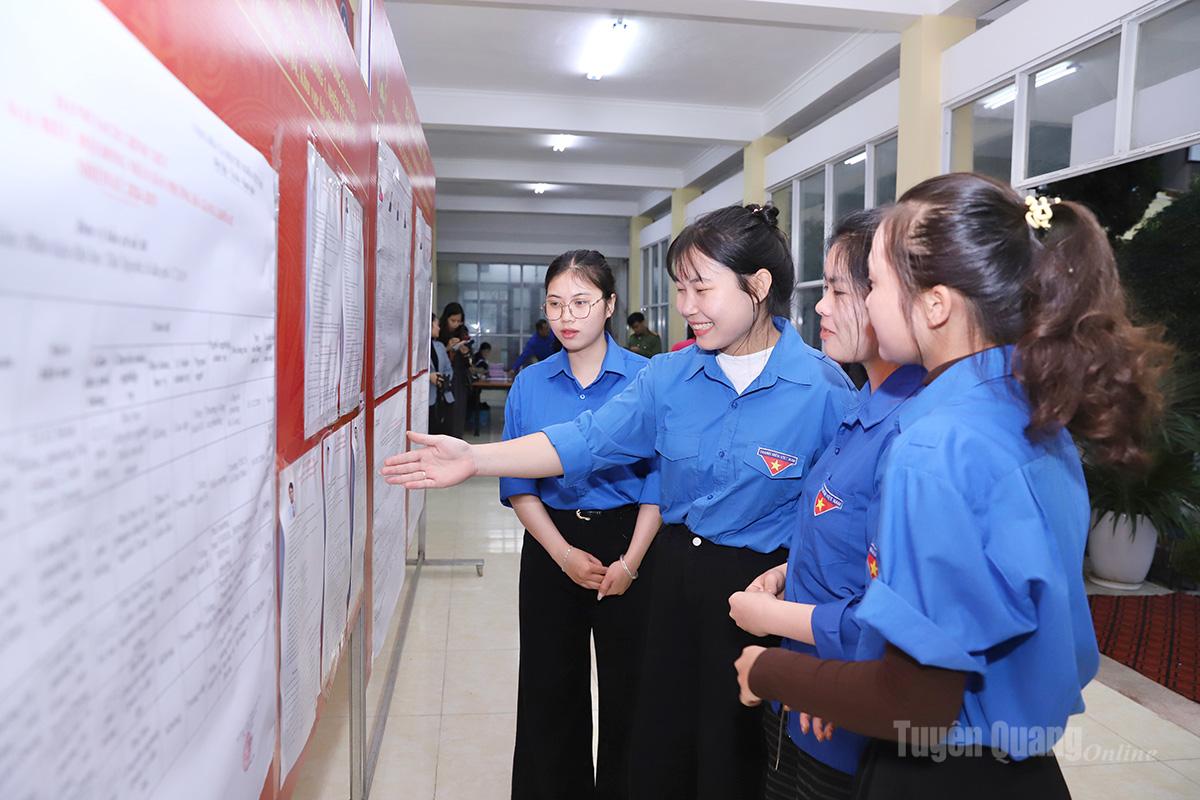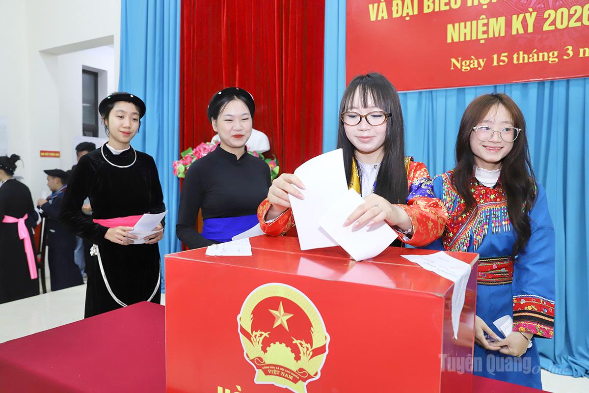 Sinh viên Phân hiệu Đại học Thái Nguyên tại phường Hà Giang 1 tham gia bầu cử.