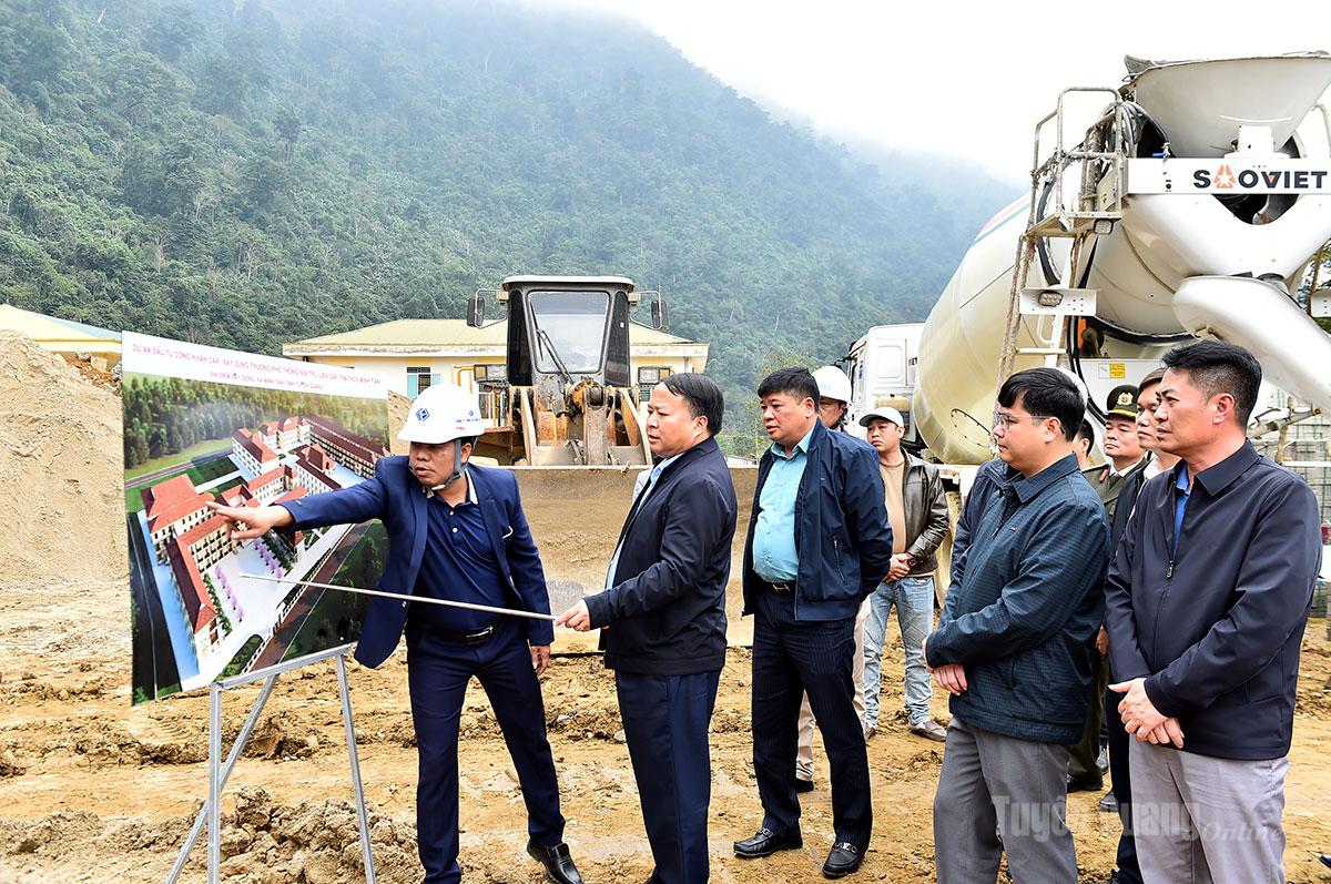 Đồng chí Chủ tịch UBND tỉnh Phan Huy Ngọc kiểm tra tiến độ xây dựng trường Phổ thông nội trú liên cấp Tiểu học và Trung học cơ sở Minh Tân.