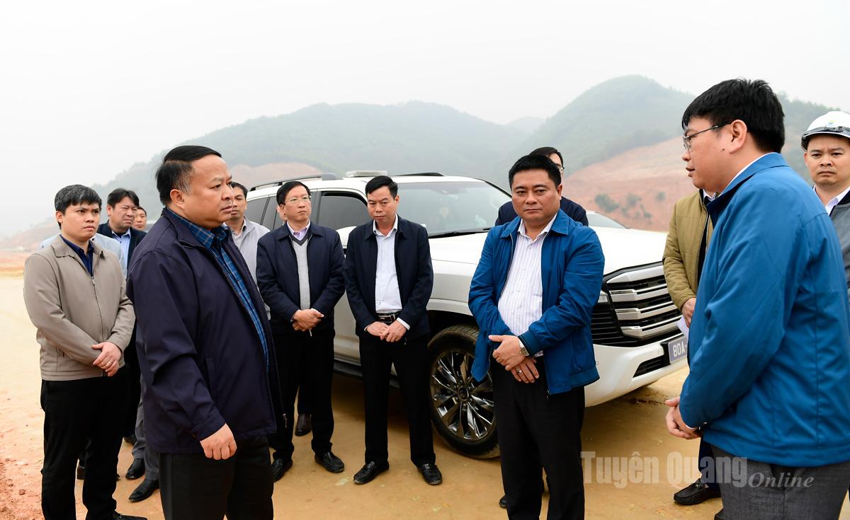 Đồng chí Chủ tịch UBND tỉnh Phan Huy Ngọc kiểm tra tiến độ cao tốc Tuyên Quang - Hà Giang (giai đoạn 1) đoạn qua xã Phù Lưu.