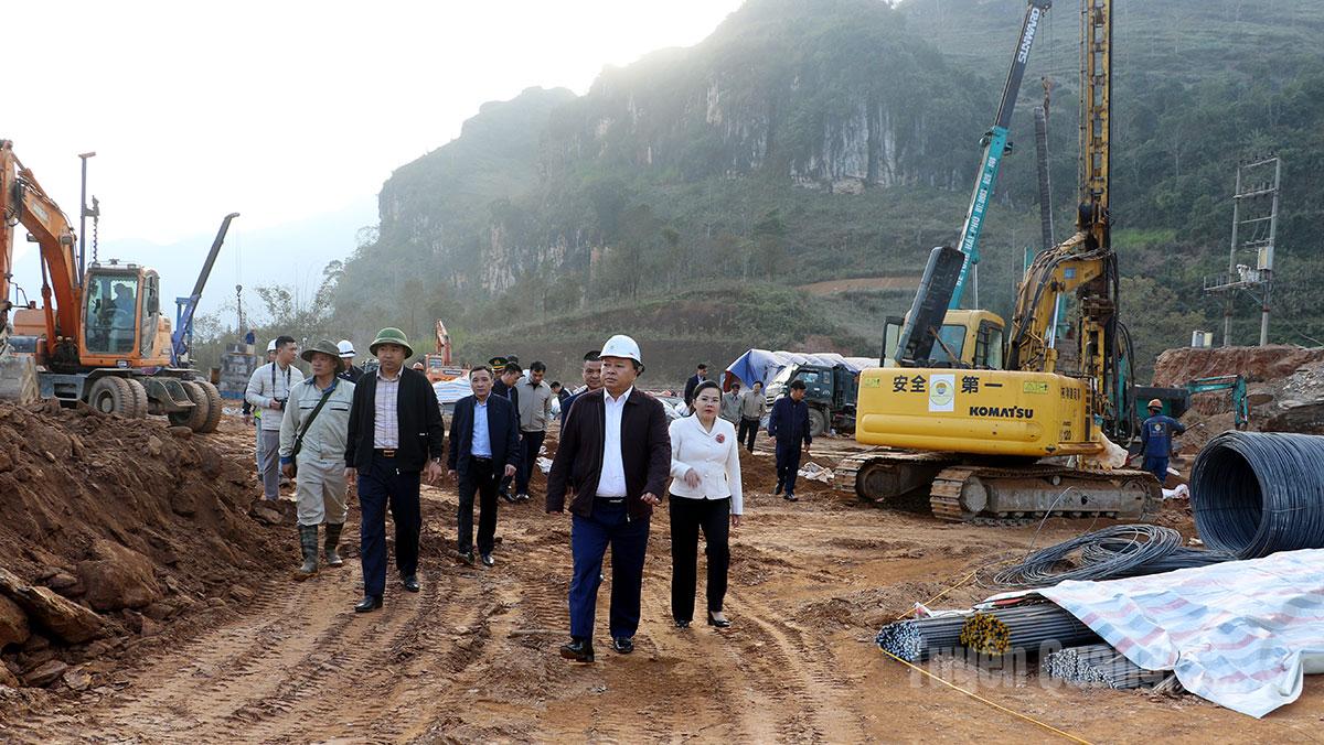 Đồng chí Phan Huy Ngọc, Phó Bí thư Tỉnh ủy, Chủ tịch UBND tỉnh kiểm tra tiến độ thi công Dự án xây dựng Trường Phổ thông Nội trú liên cấp Tiểu học và Trung học cơ sở Pà Vầy Sủ.