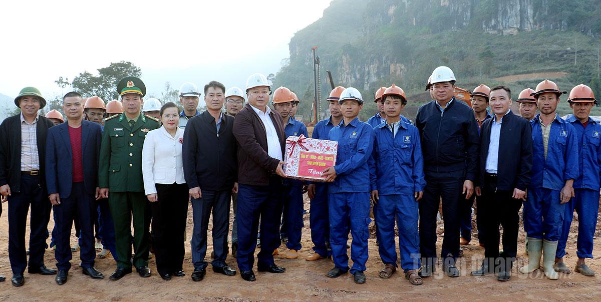 Dịp này, Chủ tịch UBND tỉnh Phan Huy Ngọc đã tặng quà cho các cán bộ kỹ thuật, công nhân đang tham gia lao động xây dựng Trường Phổ thông Nội trú liên cấp Tiểu học và Trung học cơ sở Pà Vầy Sủ và Dự án ổn định dân cư khẩn cấp xã biên giới Pà Vầy Sủ; động viên công nhân tích cực lao động, triển khai thi công 3 ca 4 kíp để đẩy nhanh tiến độ thi công…