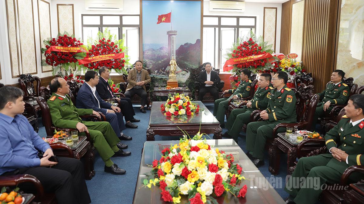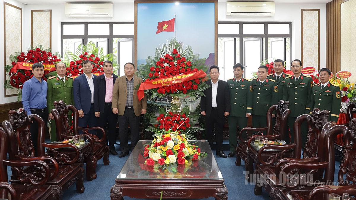 Chủ tịch UBND tỉnh Phan Huy Ngọc tới thăm, chúc mừng Bộ Chỉ huy Quân sự tỉnh.
