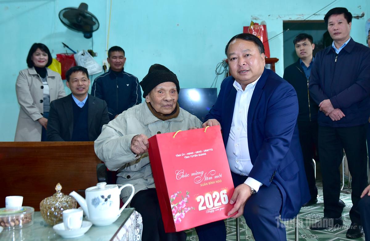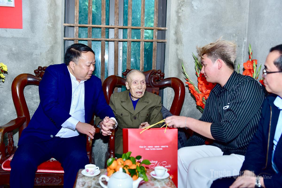Chủ tịch UBND tỉnh Phan Huy Ngọc đã đến thăm, chúc Tết tặng quà ông Đoàn Đức Chính là thương binh, ở tổ dân phố Phan Thiết 14; bà Vũ Thị Liệu, năm nay 100 tuổi, là mẹ liệt sĩ Phạm Văn Soạn, ở tổ dân phố Trung Môn 12 (cùng phường Minh Xuân); ông Lê Văn Tân, 77 năm tuổi Đảng, bộ đội thời kỳ kháng chiến chống Pháp, ở tổ dân phố Ngòi, phường Mỹ Lâm; ông Dương Phú Quý, cán bộ tiền khởi nghĩa, ở tổ dân phố Thúc Thủy, phường An Tường; ông Tạ Đức Xuân, nguyên là Hiệu Trưởng Trường THPT Tân Trào (đảng viên đã nhận huy hiệu 65 tuổi Đảng), ở tổ 4, phường Nông Tiến.