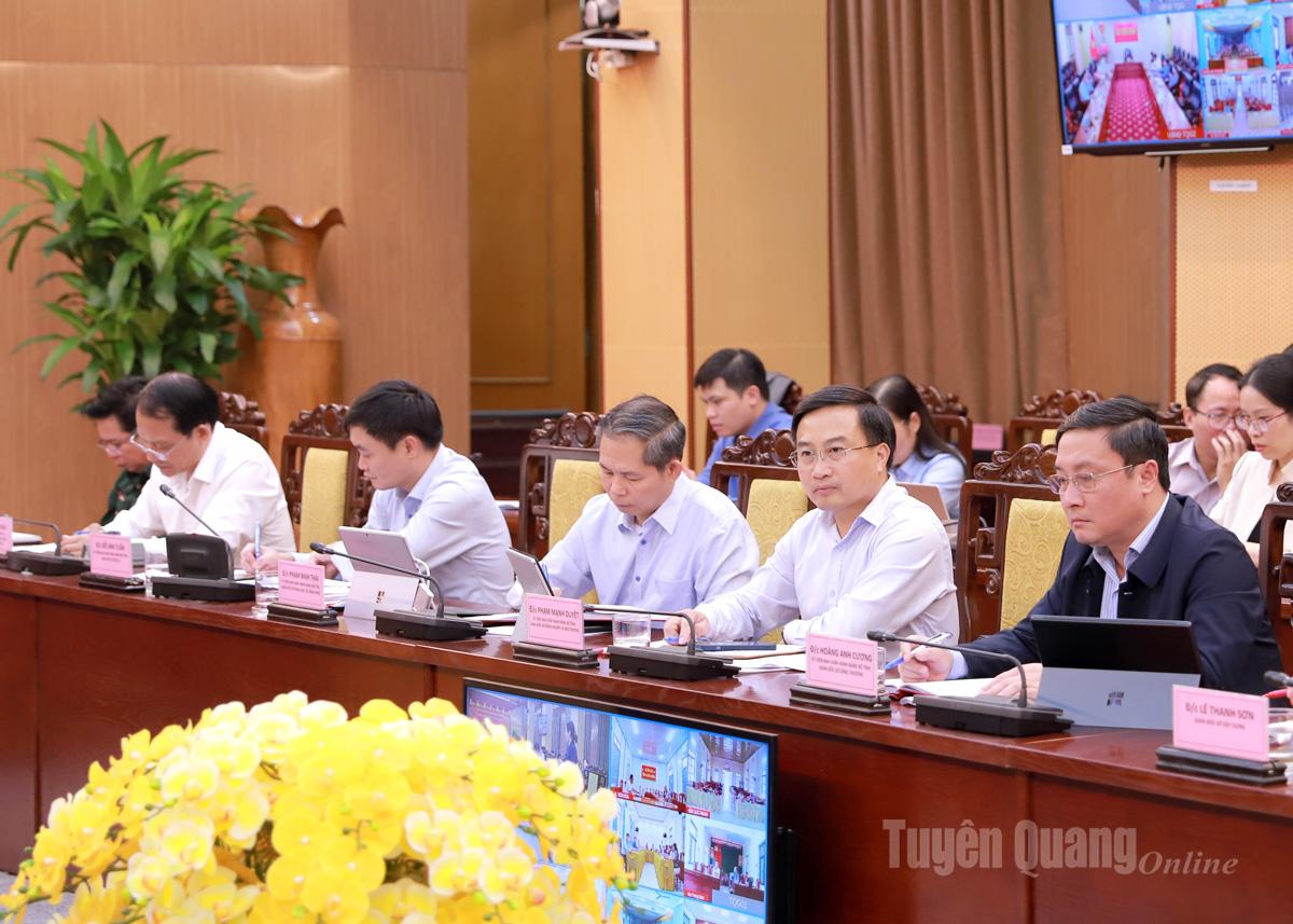 Các đồng chí Phan Huy Ngọc, Phó Bí thư Tỉnh ủy, Chủ tịch UBND tỉnh; Vương Ngọc Hà, Ủy viên Ban Thường vụ Tỉnh ủy, Phó Chủ tịch UBND tỉnh chủ trì tại điểm cầu tỉnh. Đồng chí Hoàng Gia Long, Ủy viên Ban Thường vụ Tỉnh ủy, Phó Chủ tịch UBND tỉnh chủ trì tại điểm cầu phường Hà Giang 1.
