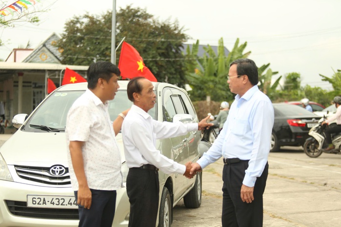 Ông Lê Văn Hẳn (bìa phải) - Phó Bí thư Tỉnh ủy, Chủ tịch UBND tỉnh Tây Ninh - ra mắt cử tri xã Thuận Mỹ