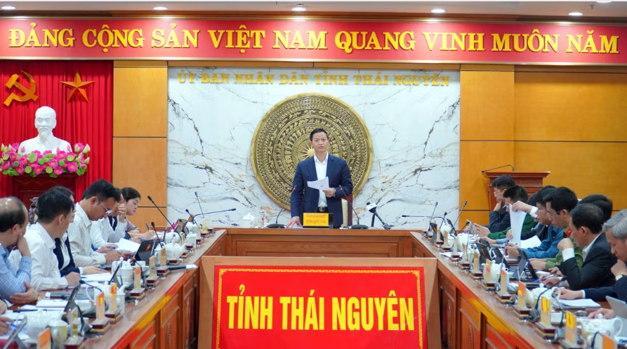 Chủ tịch UBND tỉnh Thái Nguyên Vương Quốc Tuấn phát biểu chỉ đạo tại Hội nghị.