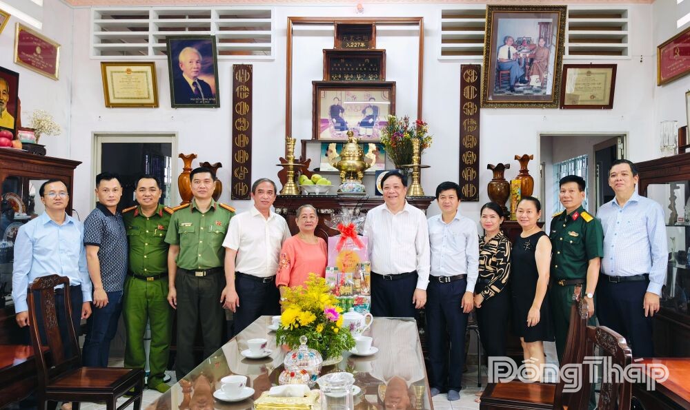 Đoàn công tác thăm, chụp ảnh lưu niệm cùng gia đình đồng chí Nguyễn Công Bình, nguyên Chủ tịch UBND tỉnh Tiền Giang (cũ).