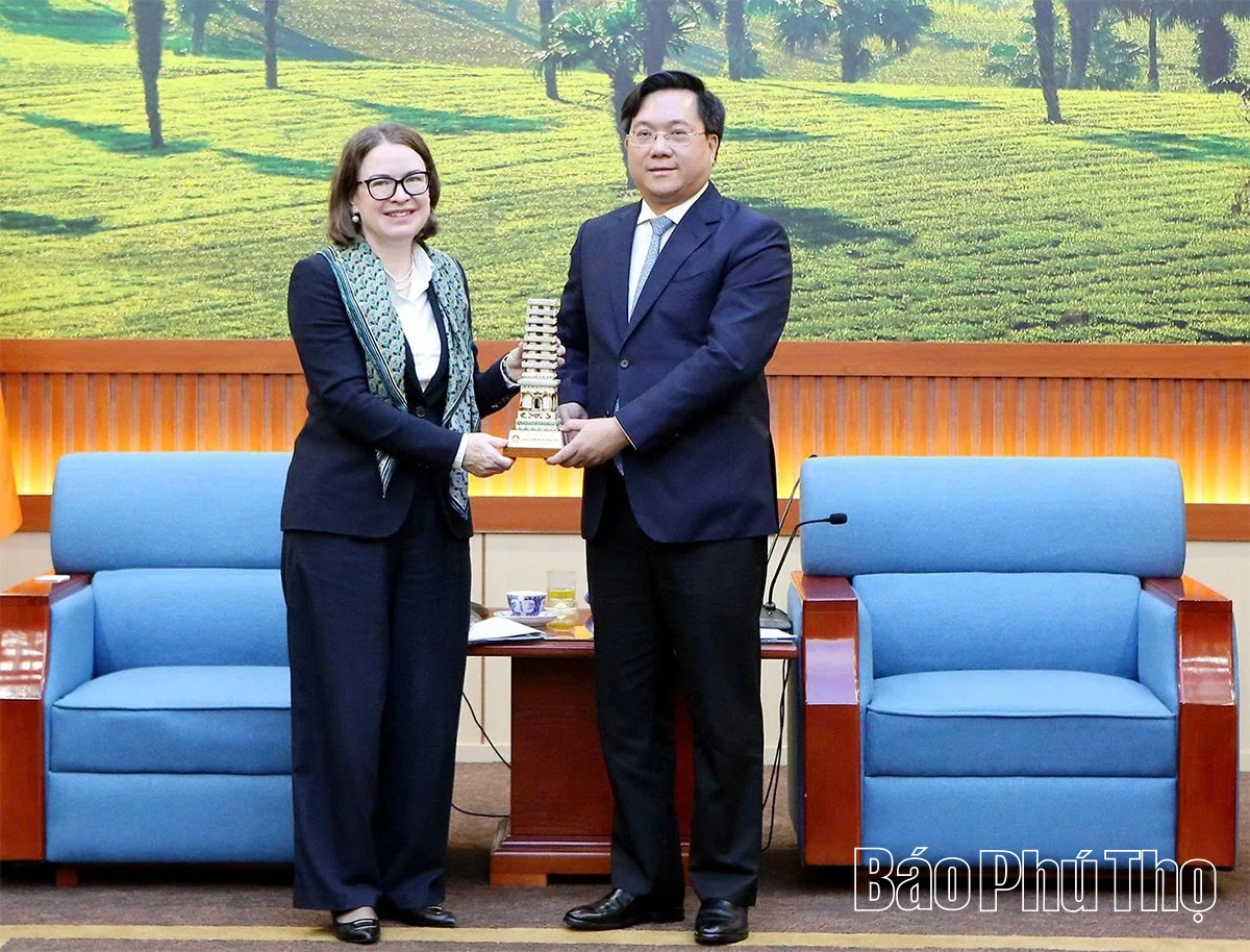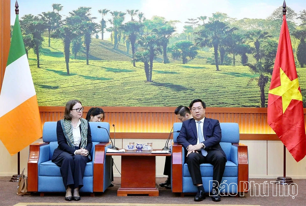 Đại sứ đặc mệnh toàn quyền nước Cộng hòa Ireland tại Việt Nam, bà Deirdre Ní Fhallúin, cho biết đây là chuyến thăm đầu tiên của bà tới tỉnh Phú Thọ trên cương vị Đại sứ. Bà đã thông tin tới Chủ tịch UBND tỉnh về quan hệ hợp tác hữu nghị giữa Ireland và Việt Nam thời gian qua, cùng những hoạt động phối hợp của Đại sứ quán và các tổ chức quốc tế tại Phú Thọ.