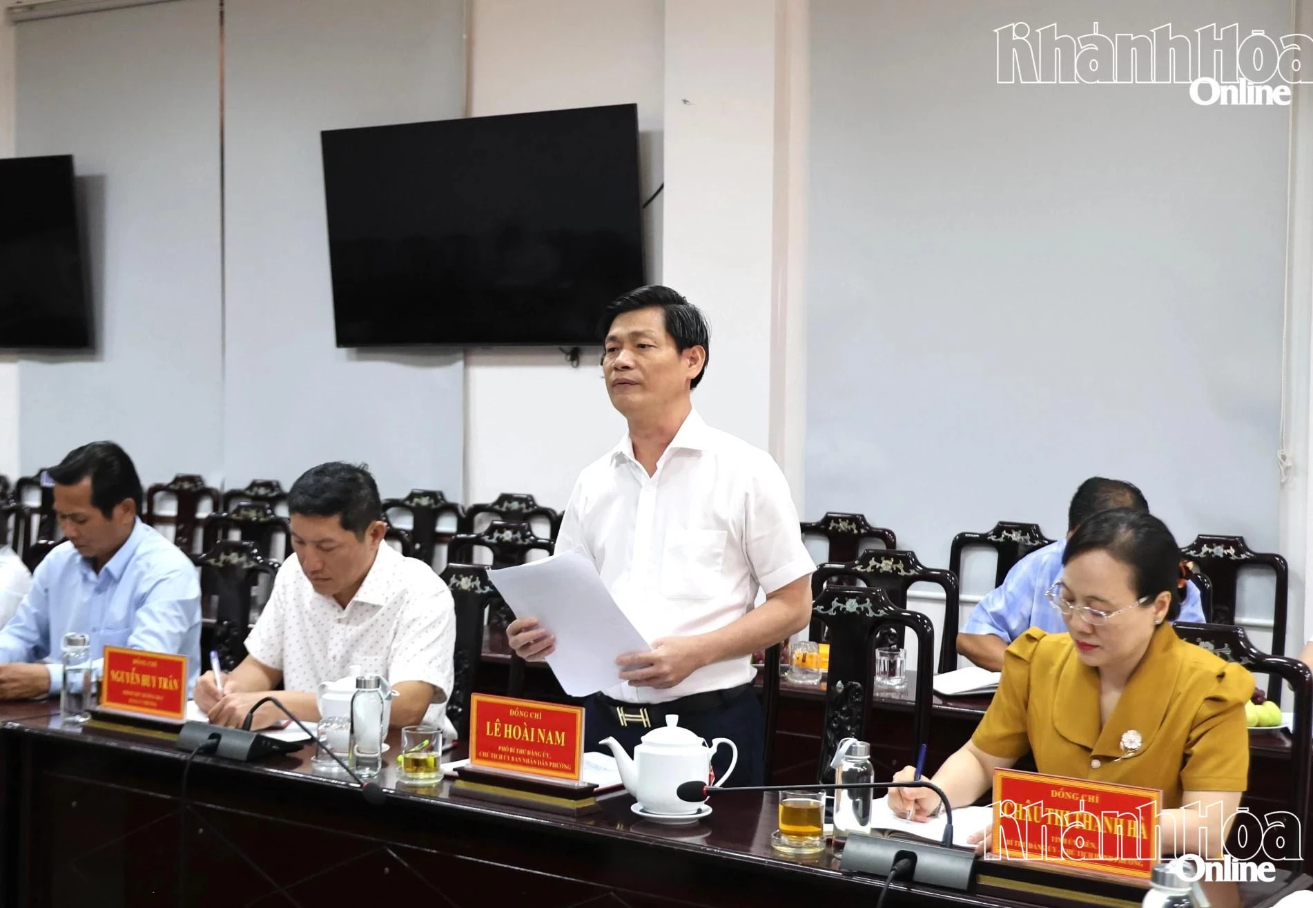 Lãnh đạo phường Phan Rang báo cáo công tác chuẩn bị bầu cử với lãnh đạo tỉnh.