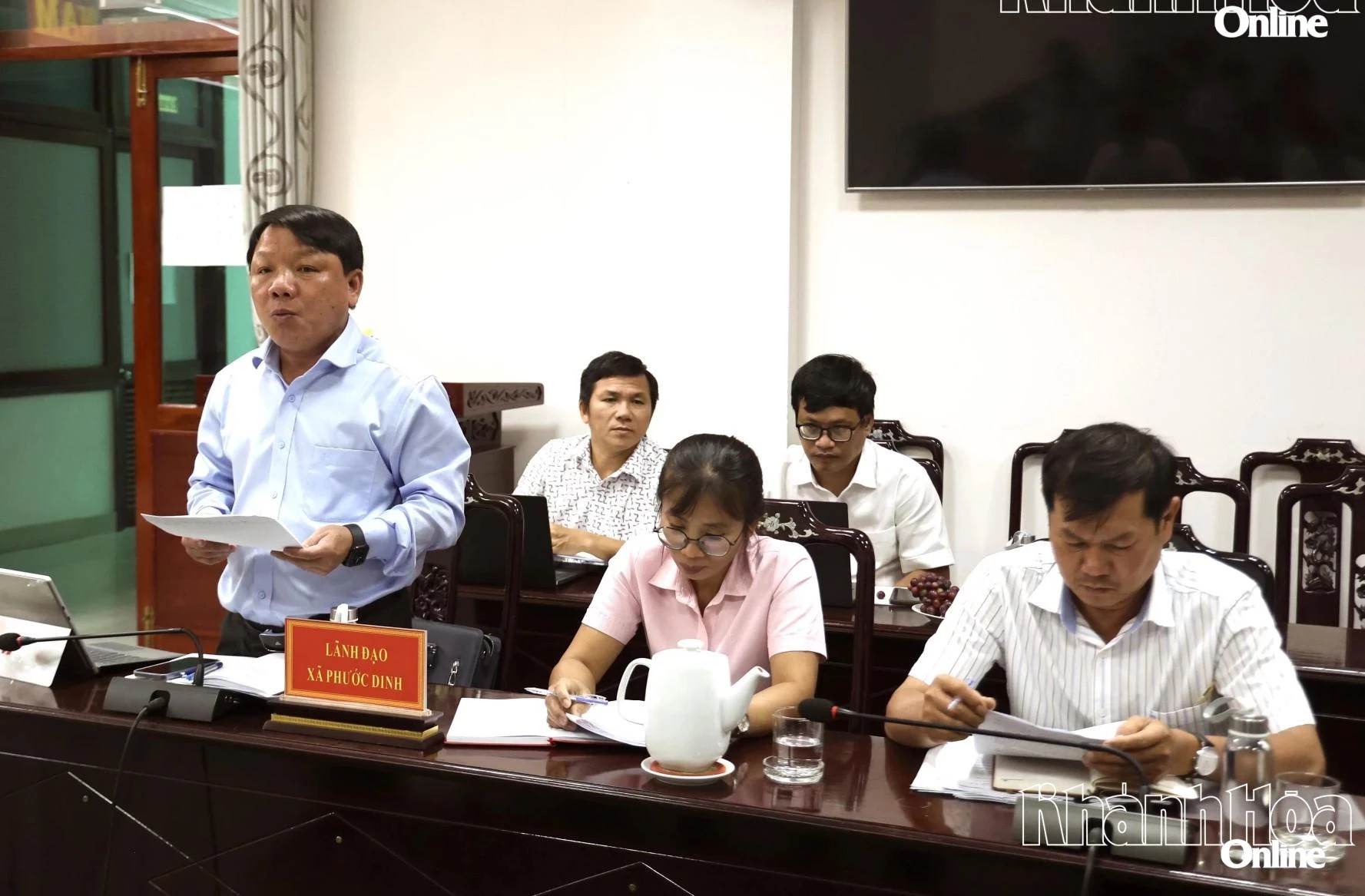 Lãnh đạo xã Phước Dinh báo cáo tình hình triển khai công tác bầu cử với lãnh đạo tỉnh.