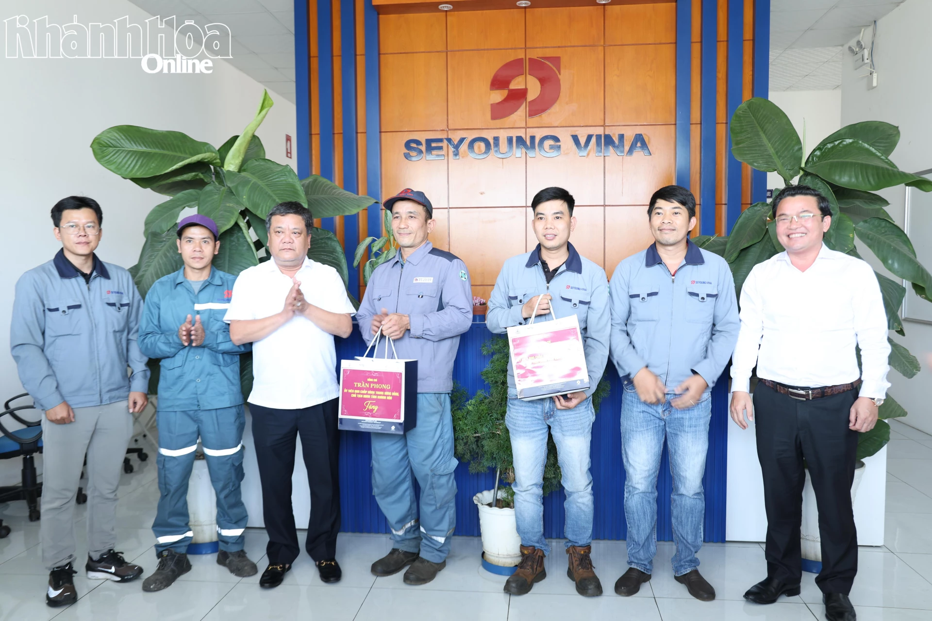 Đồng chí Trần Phong tặng quà cho công nhân Công ty TNHH Seyoung Vina.