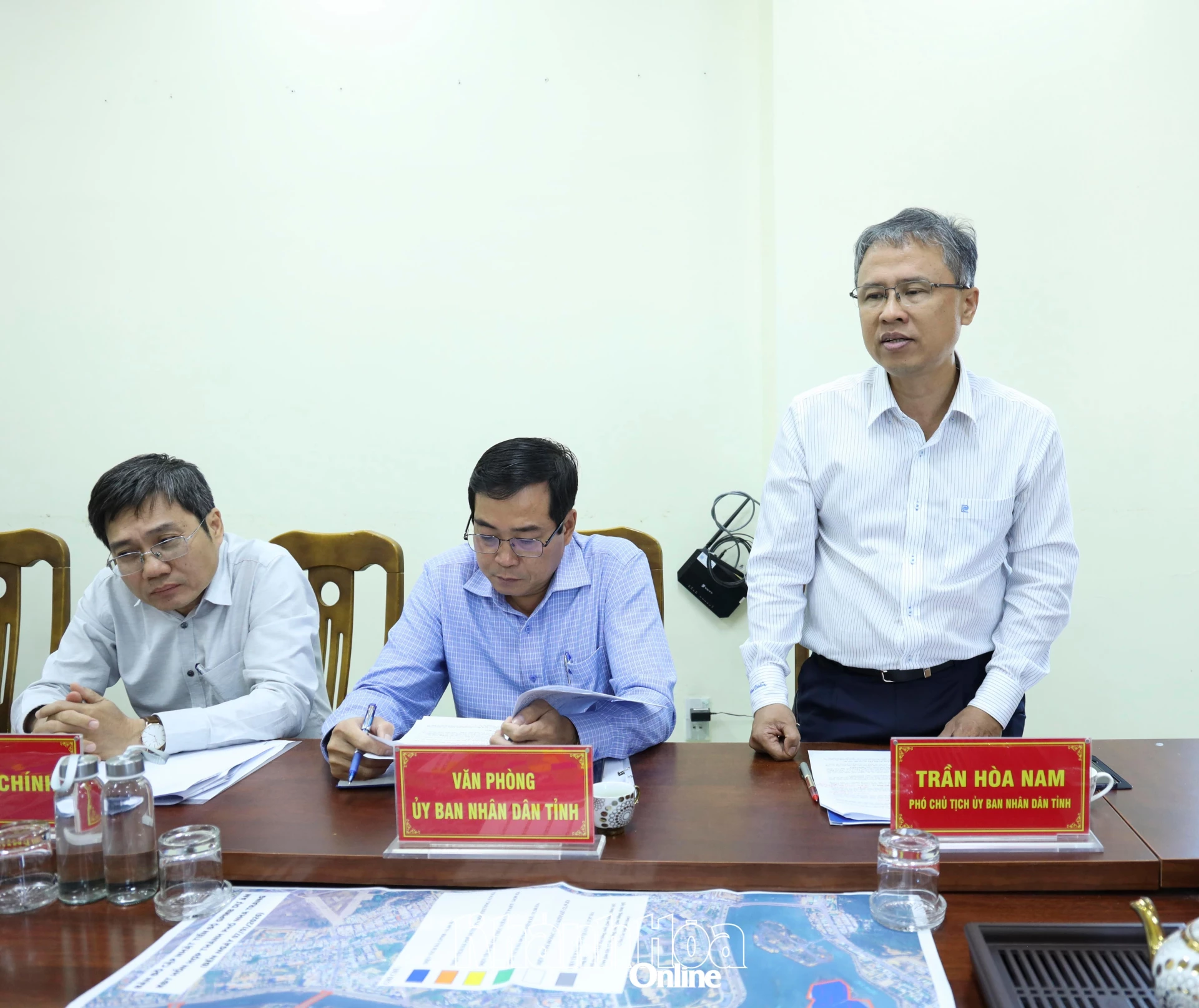 Phó Chủ tịch UBND tỉnh Trần Hòa Nam phát biểu tại cuộc họp.