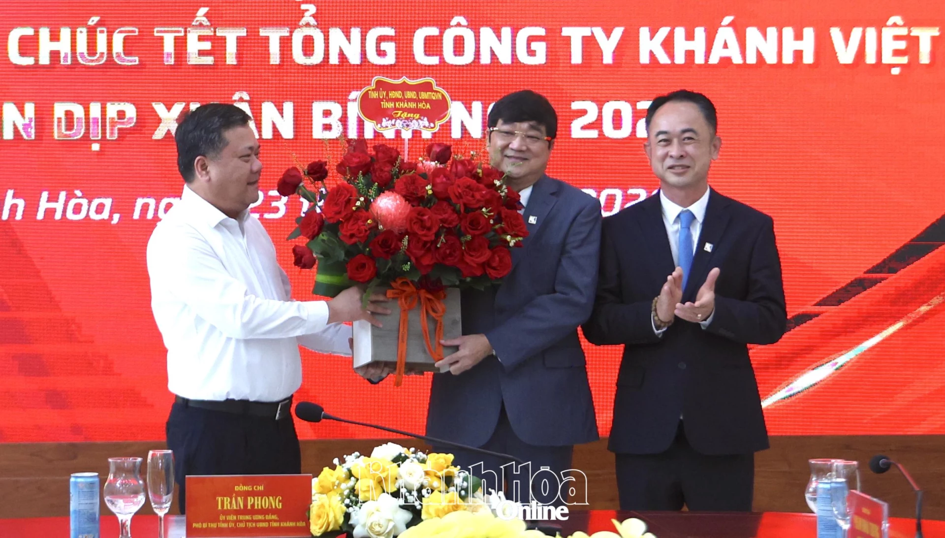 Đồng chí Trần Phong tặng hoa động viên Tổng Công ty Khánh Việt.