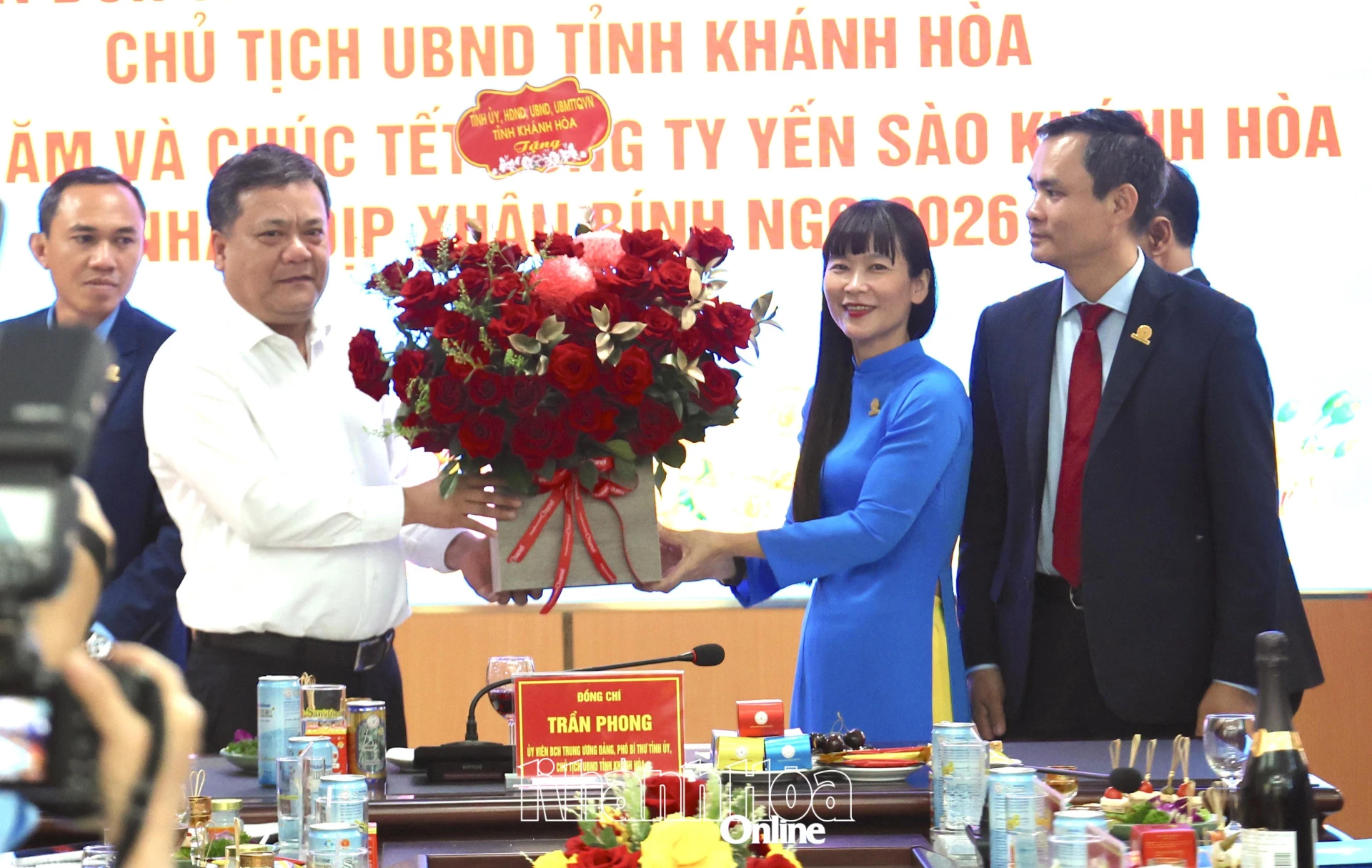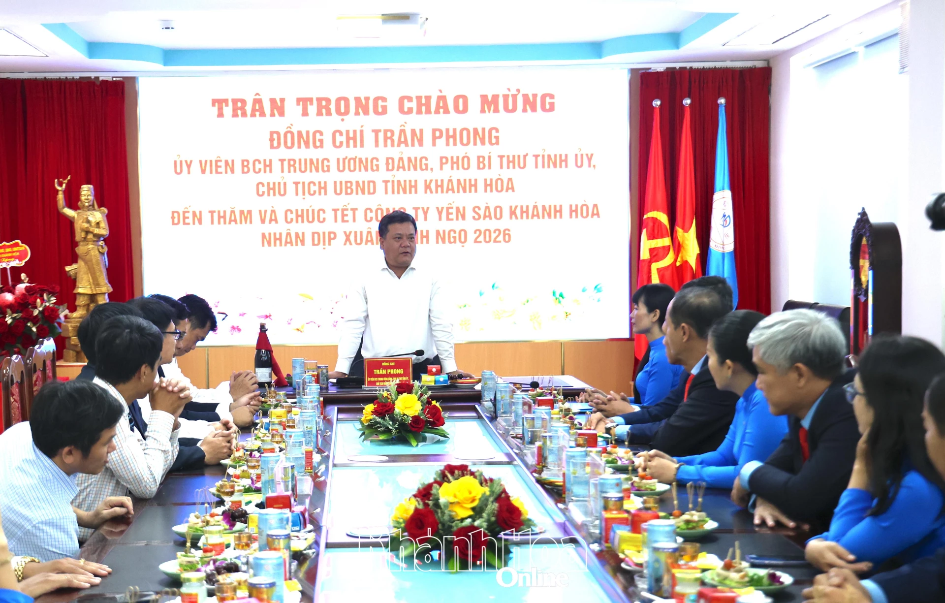 Sáng 23-2, đồng chí Trần Phong - Ủy viên Trung ương Đảng, Phó Bí thư Tỉnh ủy, Chủ tịch UBND tỉnh Khánh Hòa đến thăm, động viên Tổng Công ty Khánh Việt, Công ty TNHH Nhà nước Một thành viên Yến sào Khánh Hòa nhân dịp xuân Bính Ngọ 2026. Cùng đi có lãnh đạo Văn phòng UBND tỉnh và các sở, ban, ngành.