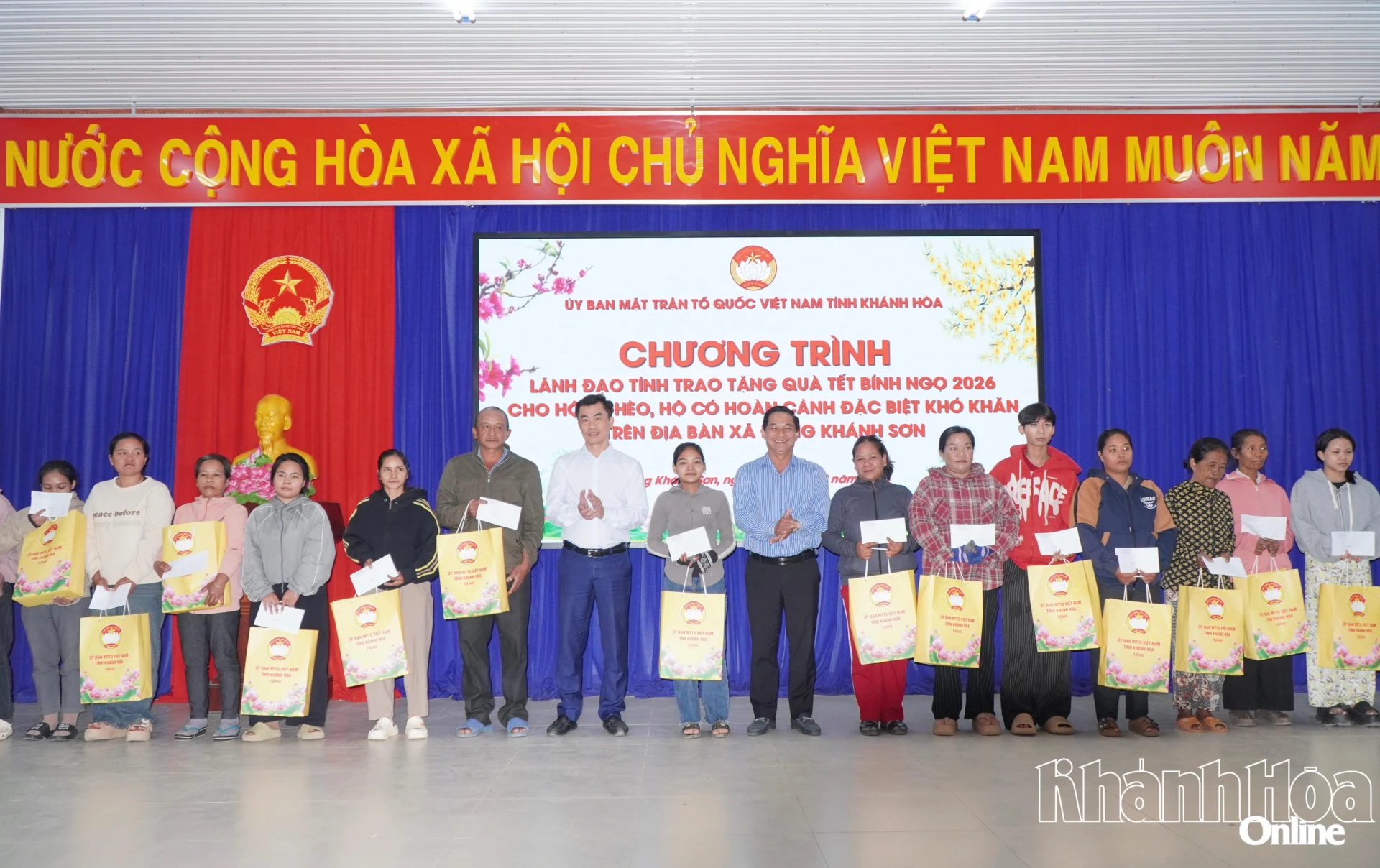 Phát biểu tại chương trình, đồng chí Trần Phong đánh giá cao những nỗ lực của địa phương trong việc triển khai kế hoạch tổ chức các hoạt động mừng Đảng - mừng xuân và Tết Nguyên đán Bính Ngọ 2026, đảm bảo đời sống an sinh cho người dân đón Tết. Đồng chí lưu ý địa phương tiếp tục rà soát, nắm bắt tình hình chuẩn bị đón Tết của người dân với mục tiêu không để ai bị bỏ lại phía sau; đồng thời mong muốn người dân cùng nhau đoàn kết, vượt qua khó khăn và xây dựng cuộc sống ấm no, hạnh phúc. Thay mặt lãnh đạo tỉnh, đồng chí Trần Phong gửi lời chúc mừng năm mới đến người dân trên địa bàn xã Đông Khánh Sơn.