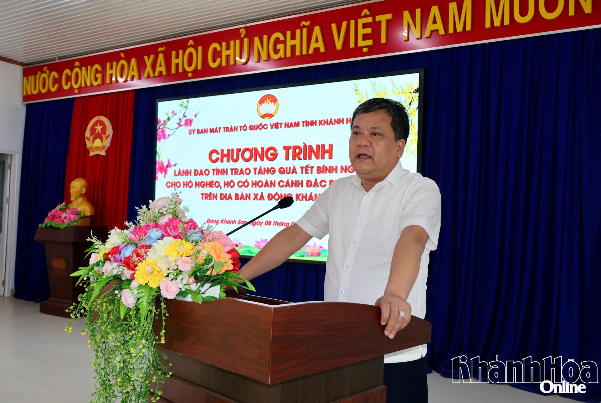 Ngày 8-2, đồng chí Trần Phong - Ủy viên Trung ương Đảng, Phó Bí thư Tỉnh ủy, Chủ tịch UBND tỉnh Khánh Hòa cùng đoàn công tác đến thăm, tặng quà cho hộ nghèo, hộ có hoàn cảnh đặc biệt khó khăn ở xã Đông Khánh Sơn. Cùng đi có đồng chí Trần Thu Mai - Ủy viên Ban Thường vụ Tỉnh ủy, Phó Chủ tịch Thường trực Ủy ban MTTQ Việt Nam tỉnh.