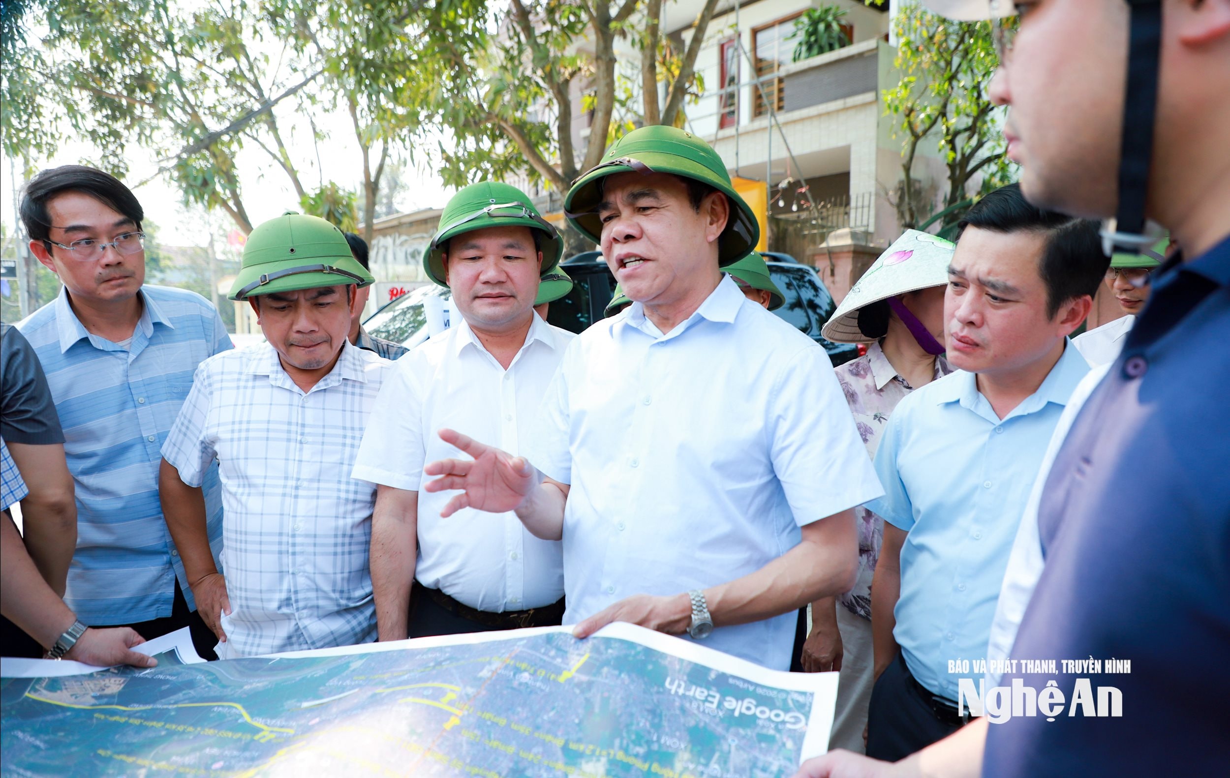 Chủ tịch UBND tỉnh Võ Trọng Hải đến kiểm tra tại tuyến đường Hải Thượng Lãn Ông. Ảnh: Thành Duy