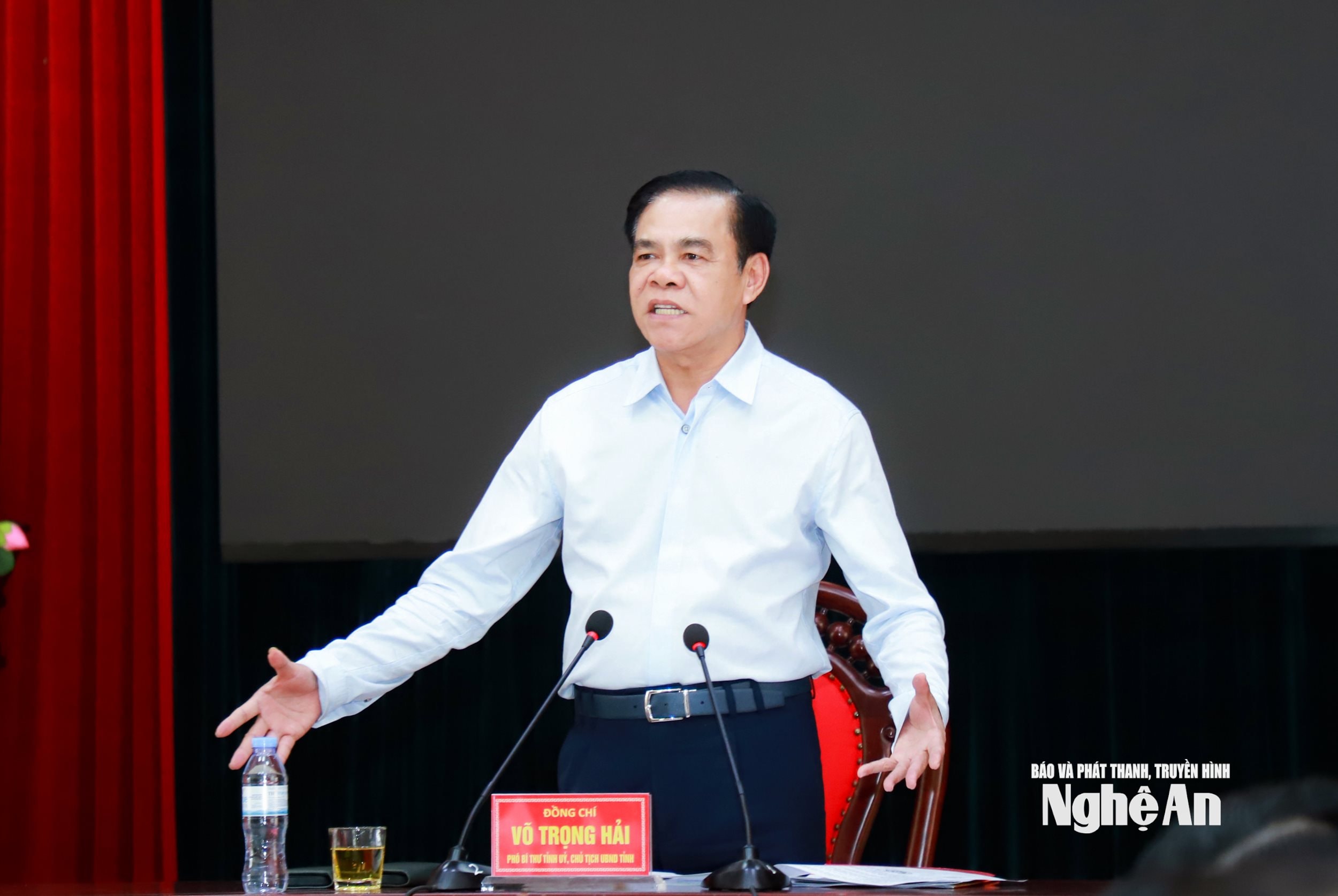 Đồng chí Võ Trọng Hải - Phó Bí thư Tỉnh ủy, Chủ tịch UBND tỉnh phát biểu kết luận cuộc làm việc. Ảnh: Thành Duy