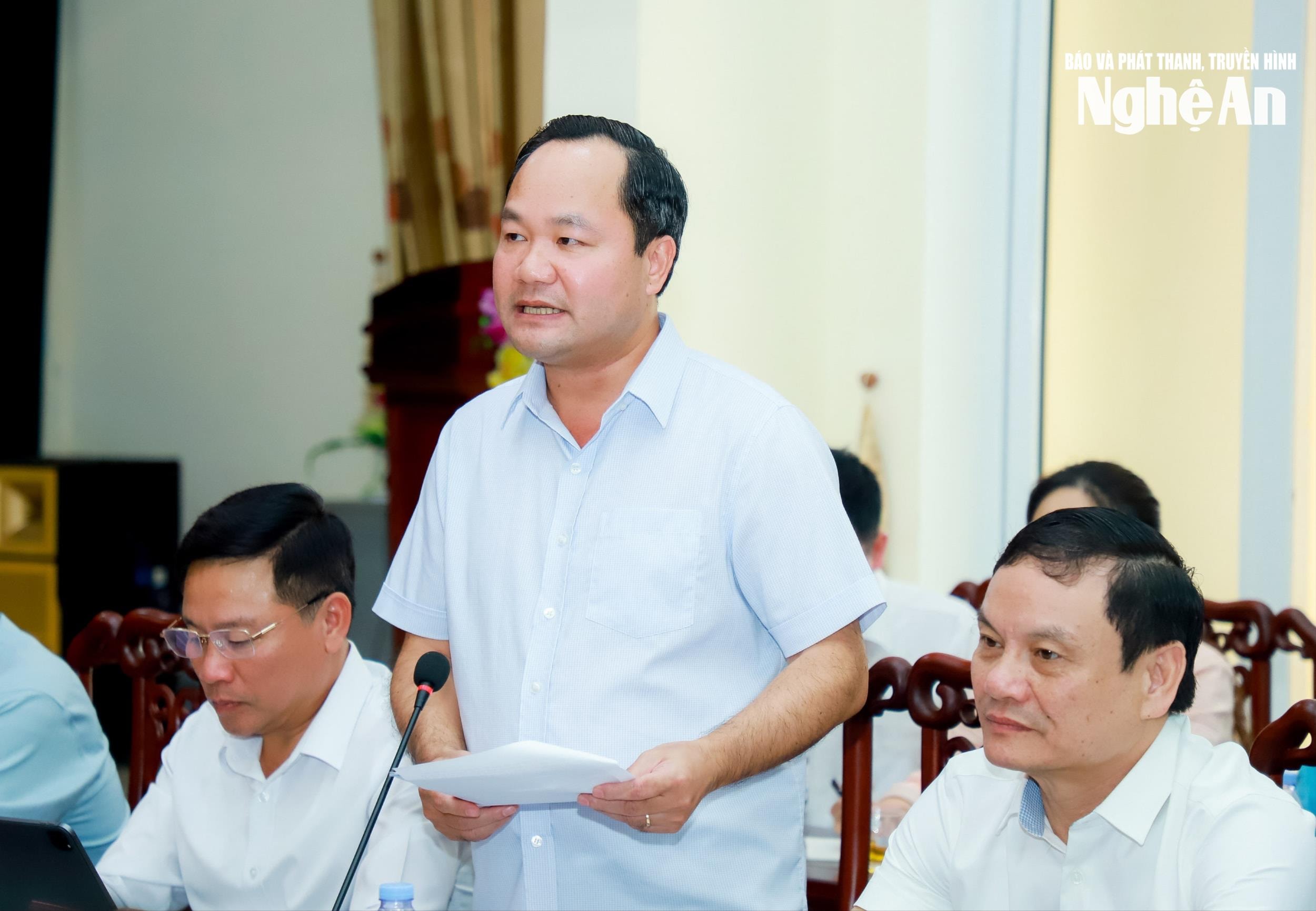 Đồng chí Hoàng Quốc Việt - Ủy viên Ban Thường vụ Tỉnh ủy, Giám đốc Sở Nông nghiệp và Môi trường phát biểu tại cuộc làm việc. Ảnh: Thành Duy