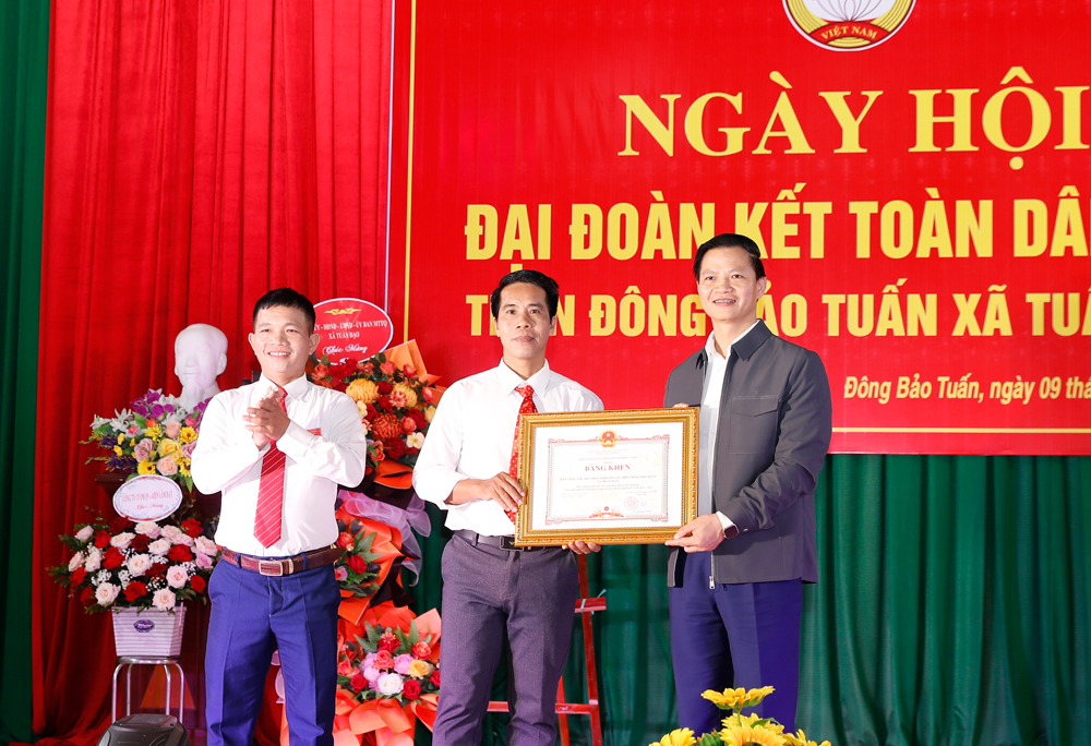 Đồng chí Vương Quốc Tuấn trao Bằng khen cho thôn Đông Bảo Tuấn.