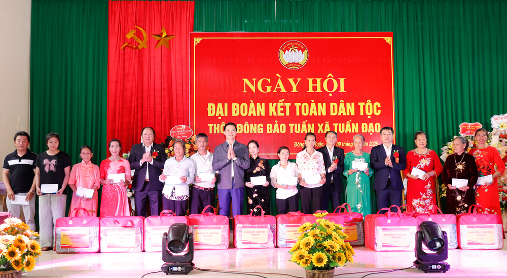 Tại Ngày hội, đồng chí Vương Quốc Tuấn trao tặng 13 suất quà cho 13 hộ nghèo thôn Đông Bảo Tuấn, mỗi suất trị giá 1,5 triệu đồng.
