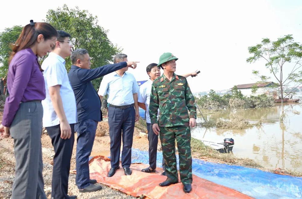 Phát biểu tại hiện trường, Chủ tịch UBND TP Hà Nội Trần Sỹ Thanh ghi nhận tinh thần chủ động của chính quyền, lực lượng vũ trang và người dân hai xã trong công tác ứng phó, cứu hộ cứu nạn.