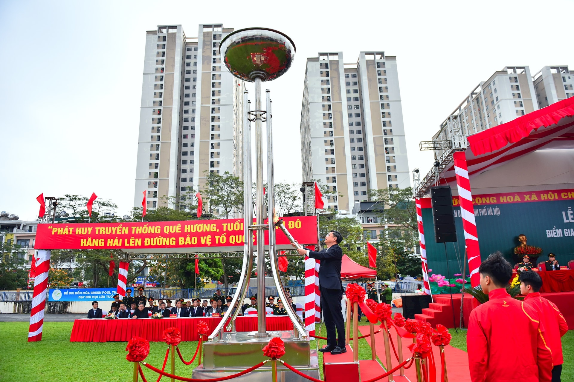 Thay mặt lãnh đạo thành phố, Chủ tịch UBND TP Hà Nội Vũ Đại Thắng ghi nhận và biểu dương các thanh niên đã chấp hành nghiêm Lệnh gọi nhập ngũ, đảm bảo quân số và chấp hành thời gian quy định, phấn khởi tham gia ngày hội tòng quân hôm nay. Đồng chí chúc mừng và gửi gắm niềm tin tưởng vào 735 đoàn viên thanh niên ưu tú, tự tin vững bước lên đường thực hiện nghĩa vụ thiêng liêng bảo vệ Tổ quốc với khí thế và quyết tâm cao.