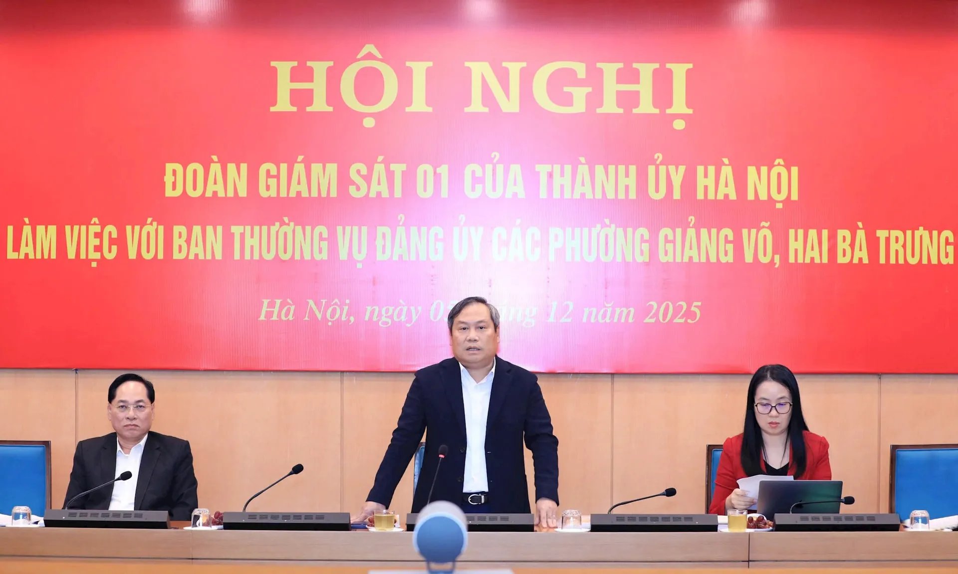 Đoàn giám sát số 01 của Ban Thường vụ Thành ủy Hà Nội do Ủy viên Trung ương Đảng, Phó Bí thư Thành ủy, Chủ tịch UBND TP Vũ Đại Thắng làm Trưởng đoàn đã làm việc với Ban Thường vụ Đảng ủy phường Hai Bà Trưng