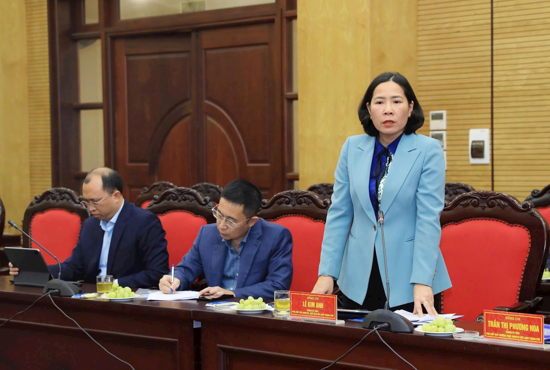 Phó Chủ tịch Ủy ban MTTQ Việt Nam thành phố, Chủ tịch Hội Liên hiệp phụ nữ TP Hà Nội Lê Kim Anh phát biểu. Ảnh: Viết Thành