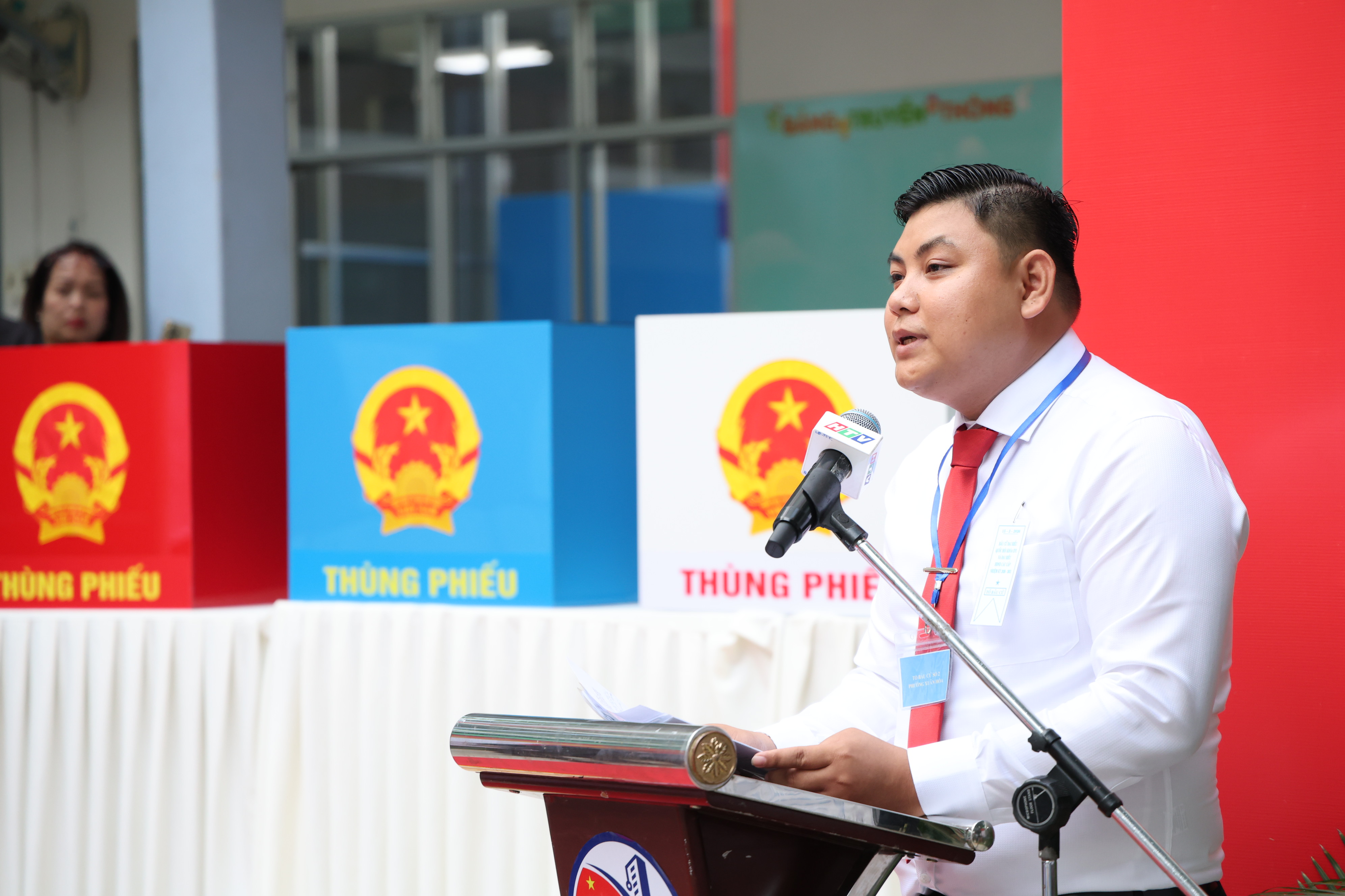 Ông Lê Thanh Bình, Phó Chủ tịch Ủy ban MTTQ Việt Nam, Bí thư Đoàn phường Xuân Hòa, Tổ trưởng Tổ bầu cử số 2, cho biết điểm bầu cử số 2 tại Trường mầm non tuổi thơ 7, có các cử tri của khu phố 7 tham gia bỏ phiếu.