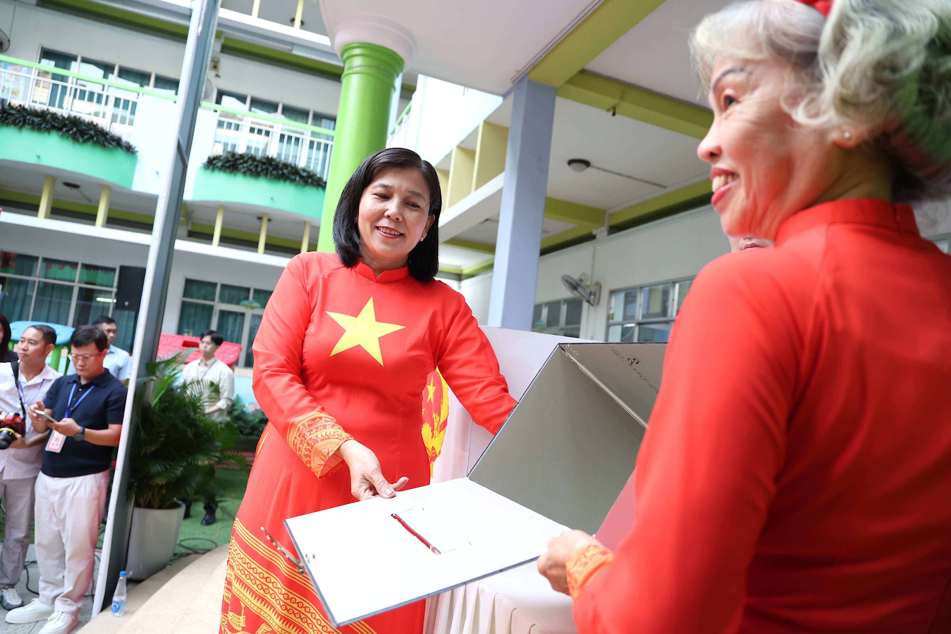 Tham dự chương trình bầu cử có ông Nguyễn Văn Được, Ủy viên Trung ương Đảng, Phó Bí thư Thành ủy, Chủ tịch UBND TP.HCM; ông Nguyễn Tấn Dũng, nguyên Ủy viên Bộ Chính trị, nguyên Thủ tướng Chính phủ cùng phu nhân.