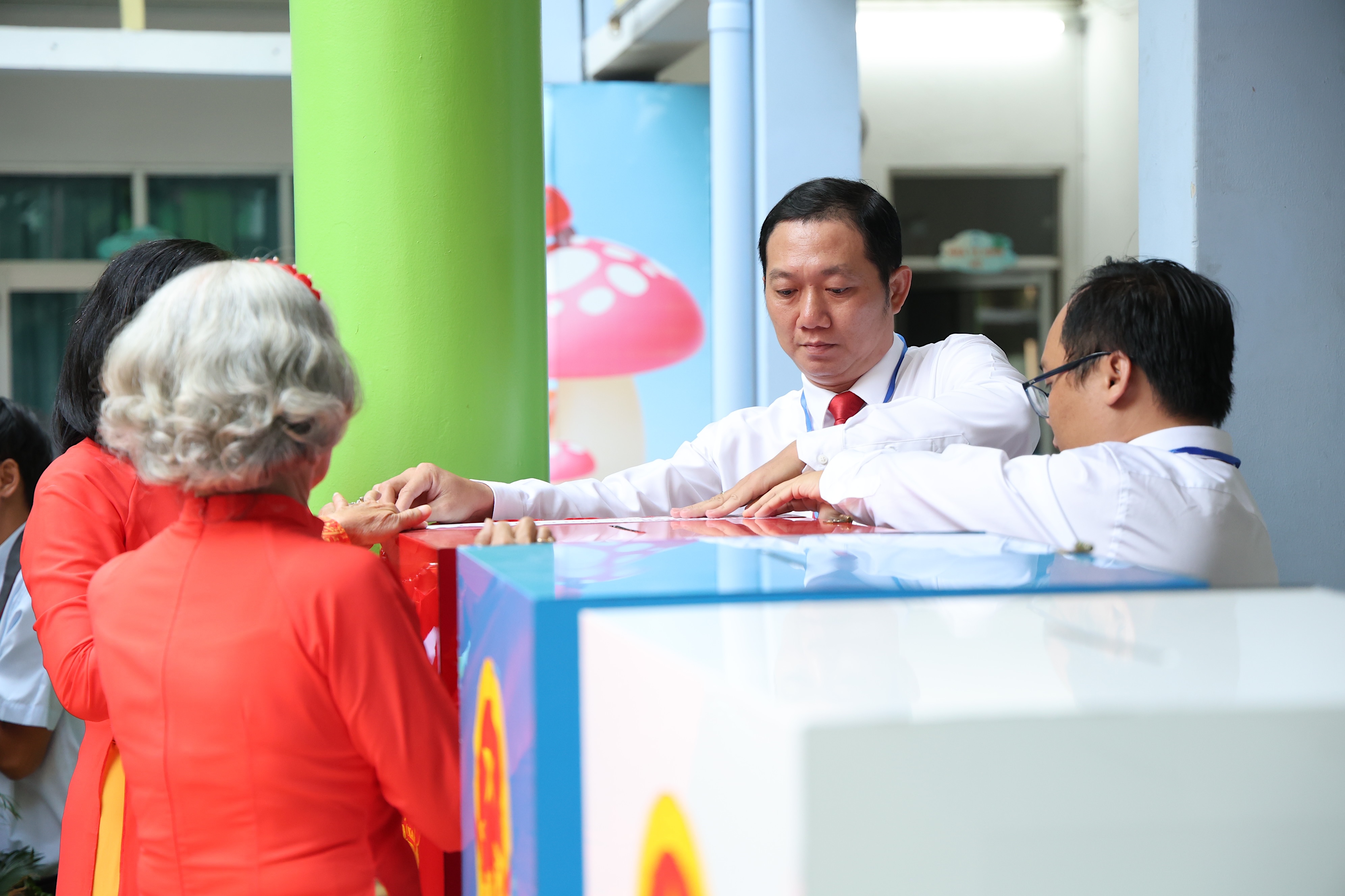 Ông Bình cho biết có khoảng 40 nhân sự trực tiếp tham gia hỗ trợ cho công tác tổ chức bầu cử tại điểm bầu cử này.