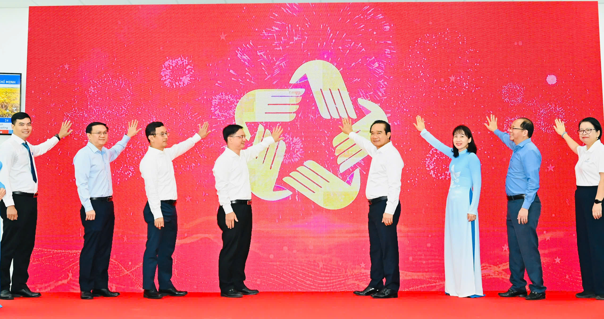 Chủ tịch UBND TPHCM Nguyễn Văn Được cùng đại biểu thực hiện nghi thức ra mắt Trung tâm Phục vụ hành chính công TPHCM. Ảnh: VIỆT DŨNG