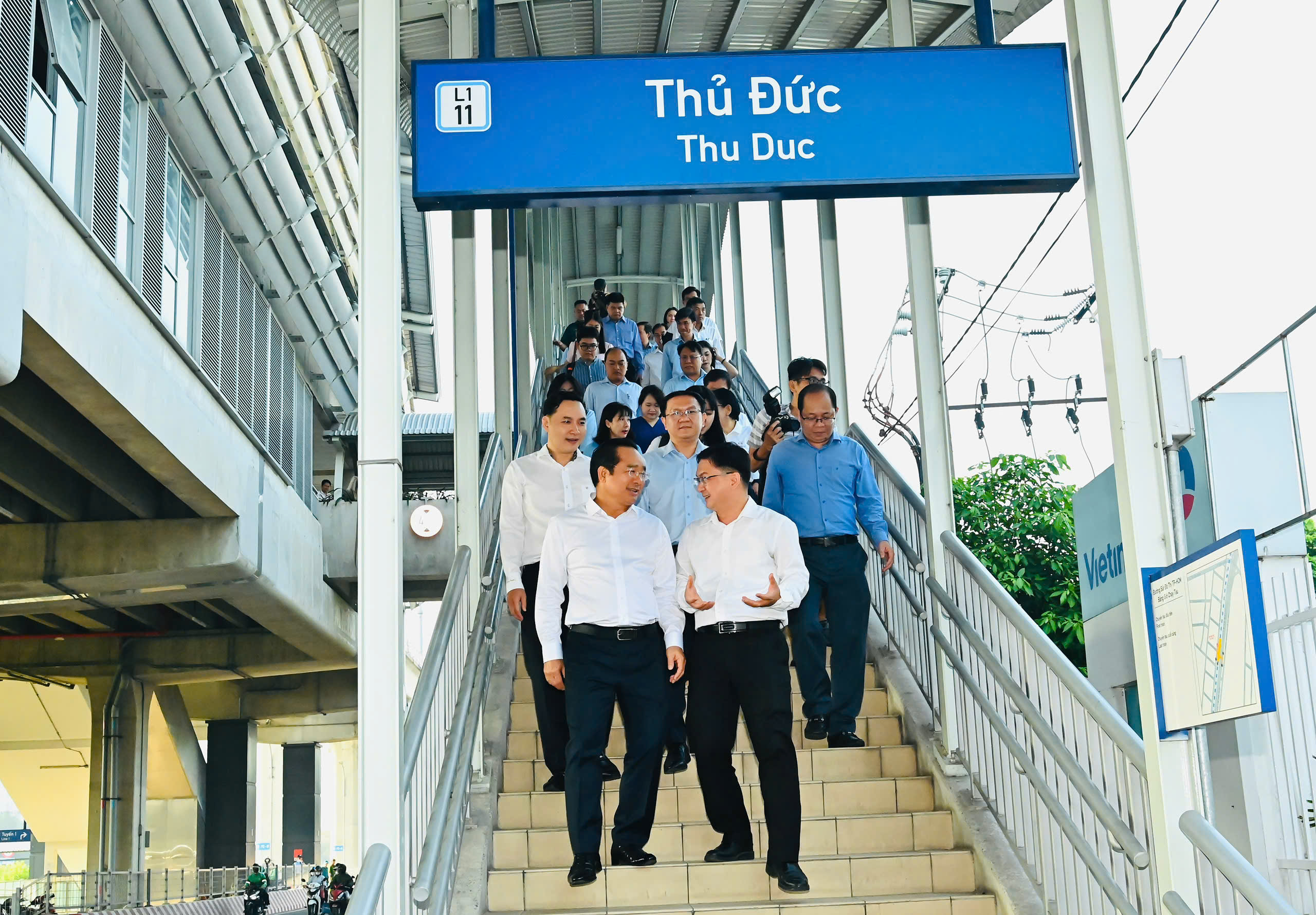 Chủ tịch UBND TPHCM cùng đoàn di chuyển bằng metro đến Trung tâm Phục vụ hành chính công TPHCM. Ảnh: VIỆT DŨNG