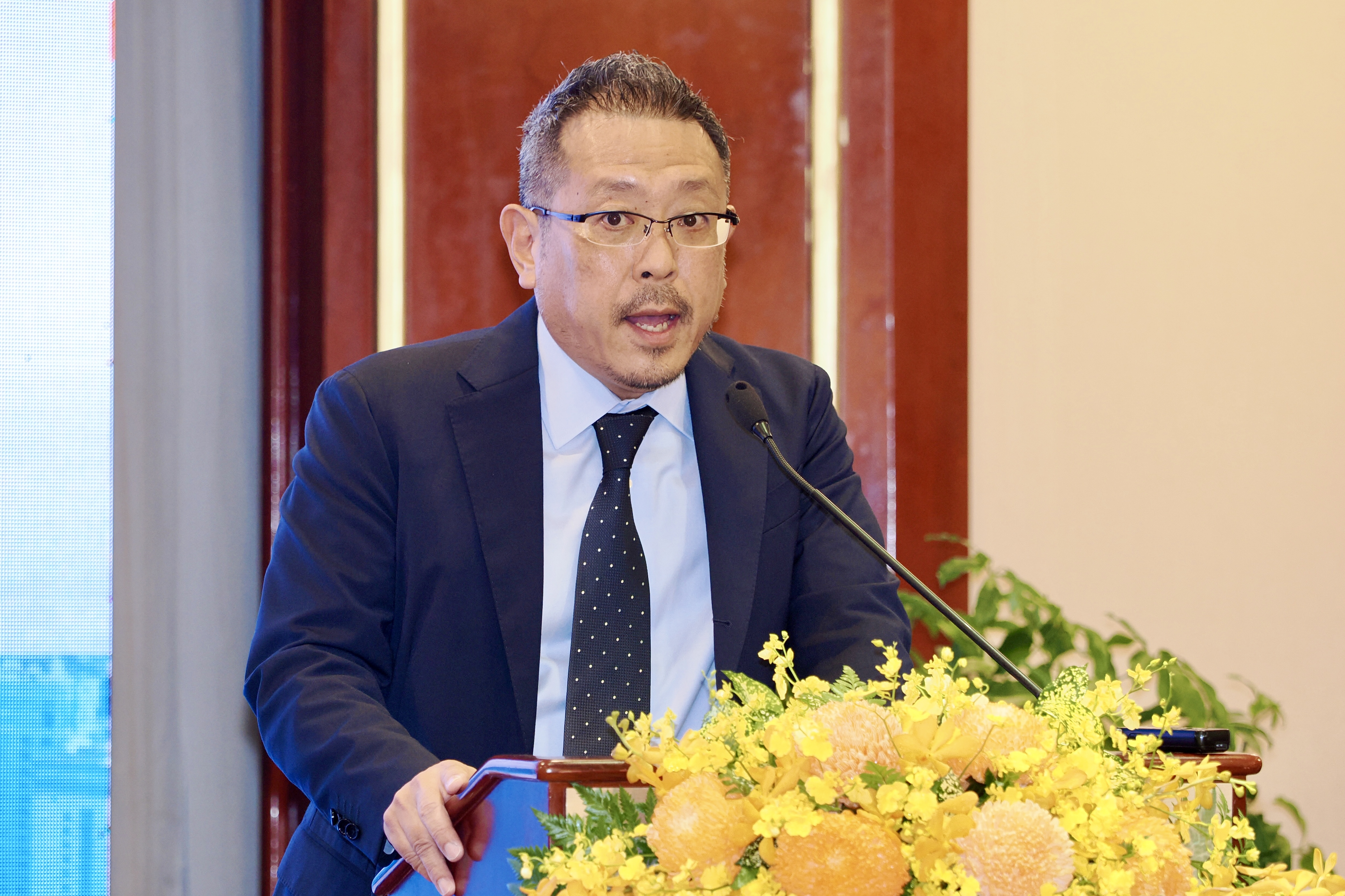 Ông Nakagawa Motohisa, Phó Chủ tịch Hiệp hội Doanh nghiệp Nhật Bản tại TPHCM (JCCH), trình bày các kiến nghị của doanh nghiệp Nhật Bản. Ảnh: HOÀNG HÙNG