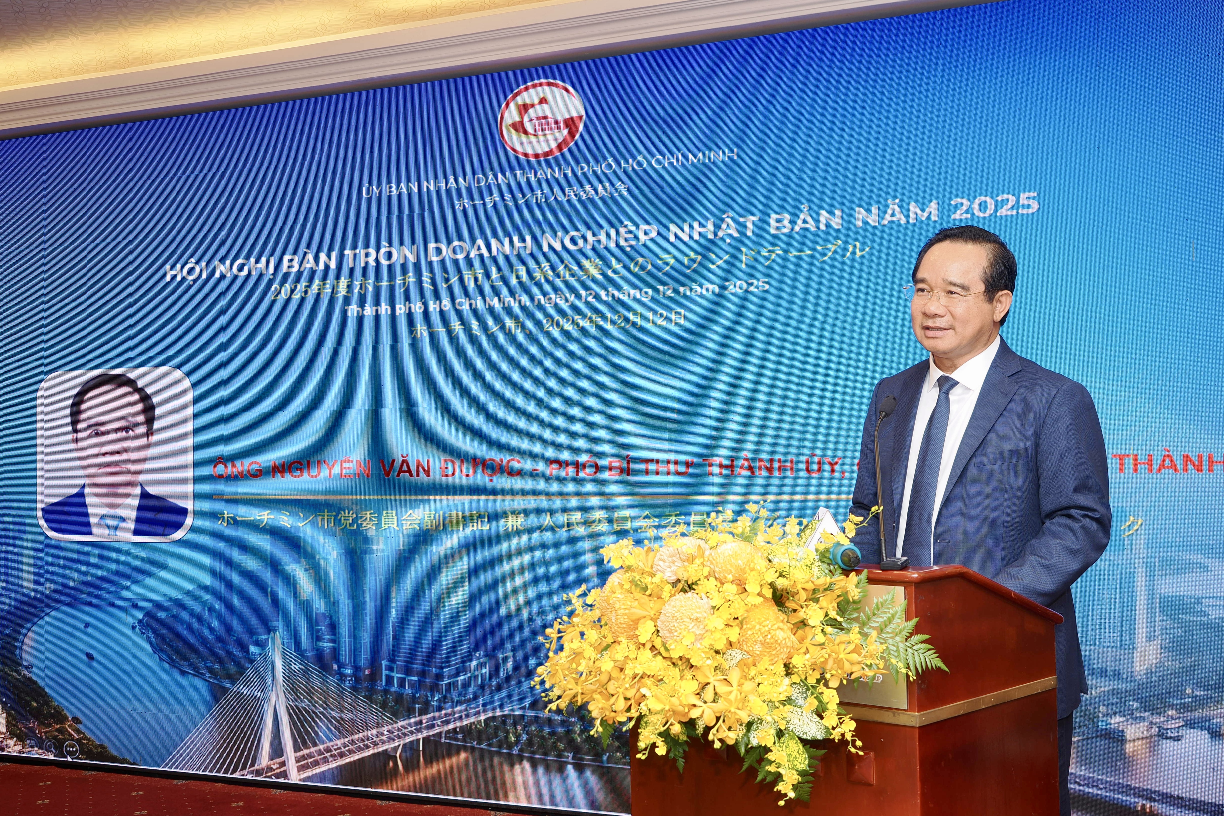 Đồng chí Nguyễn Văn Được, Chủ tịch UBND TPHCM, phát biểu tổng kết Hội nghị Bàn tròn Doanh nghiệp Nhật Bản năm 2025. Ảnh: HOÀNG HÙNG