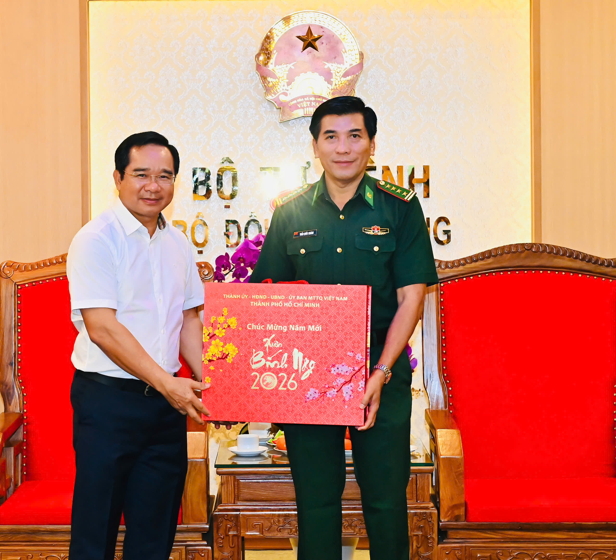 Nhân dịp Tết Nguyên đán 2026, Chủ tịch UBND TPHCM gửi lời chúc Đảng ủy - Bộ Tư lệnh cùng cán bộ, chiến sĩ Cơ quan Thường trực phía Nam, Bộ Tư lệnh Bộ đội Biên phòng đón một mùa xuân vui tươi, hạnh phúc, luôn hoàn thành xuất sắc các nhiệm vụ được giao.