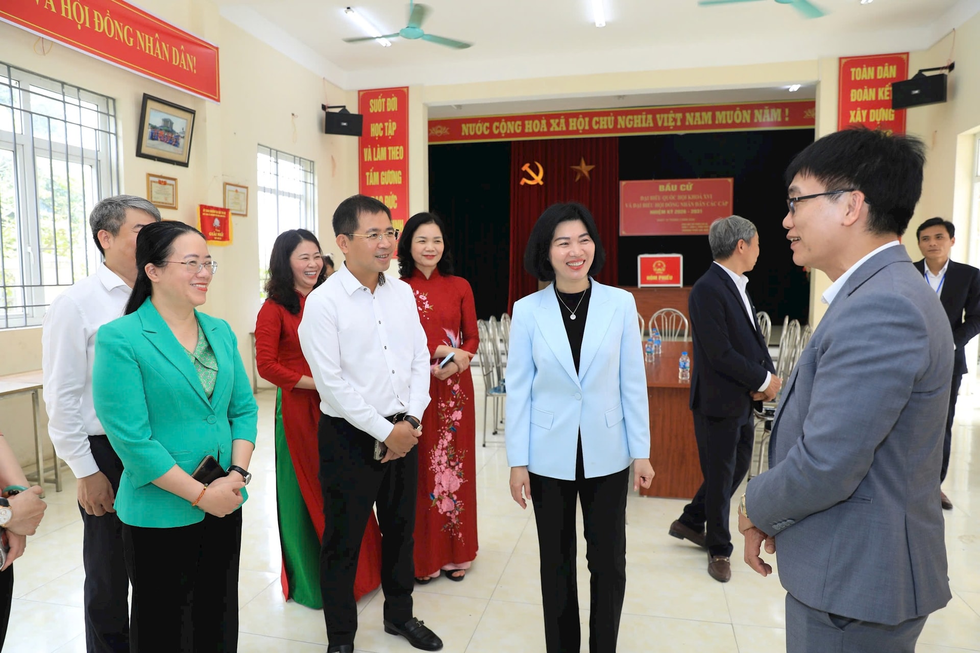 Đồng chí Phùng Thị Hồng Hà tin tưởng xã Ô Diên sẽ hoàn thành tốt công tác bầu cử. Ảnh: LH