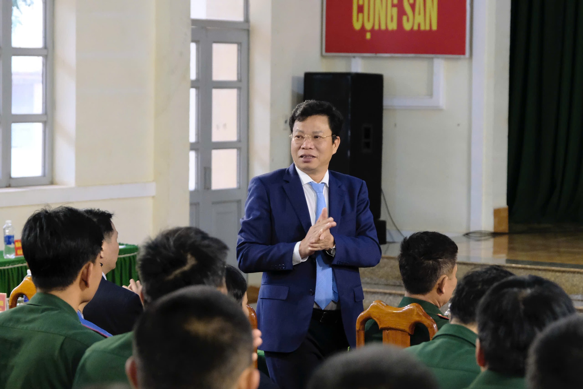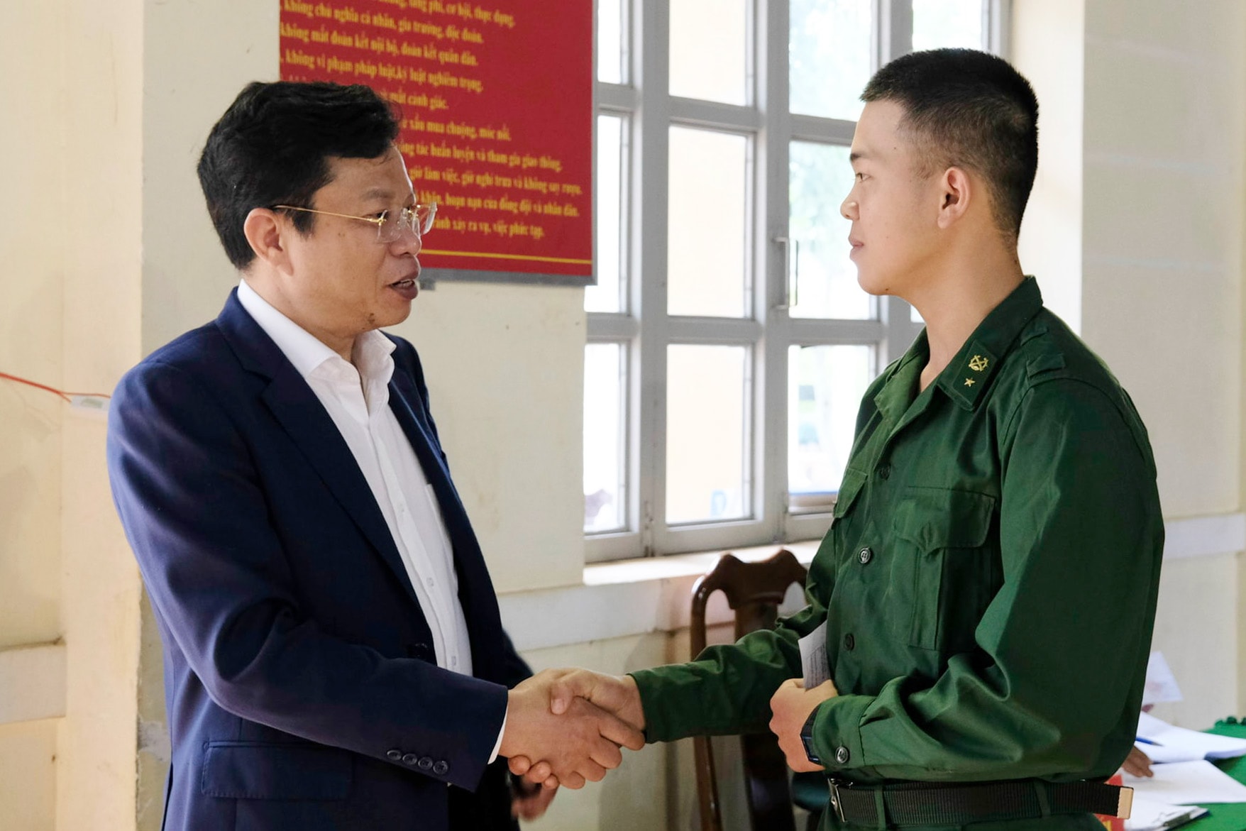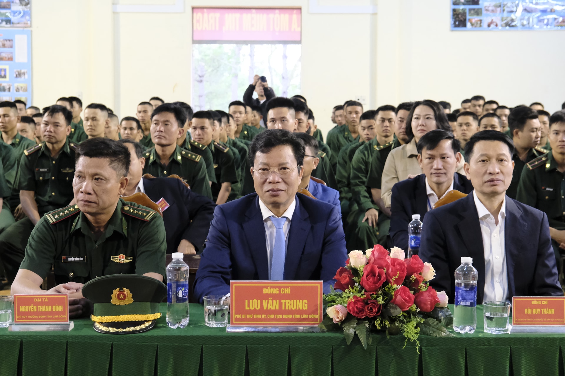 Đồng chí Lưu Văn Trung, Phó Bí thư Tỉnh ủy, Chủ tịch HĐND tỉnh, Chủ tịch Ủy ban Bầu cử tỉnh Lâm Đồng thăm hỏi, động viên các chiến sĩ trẻ