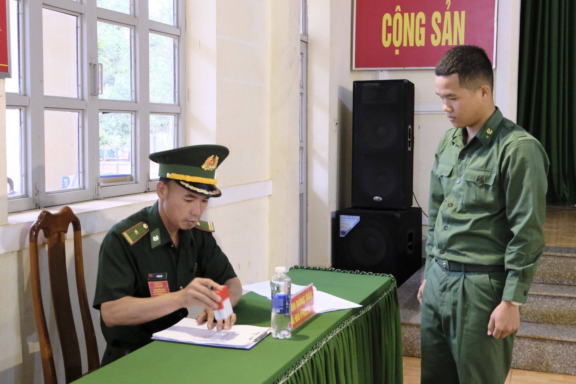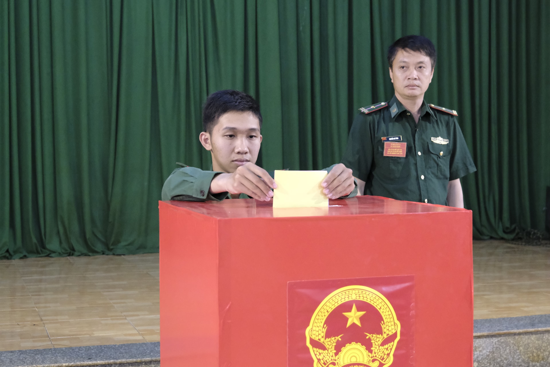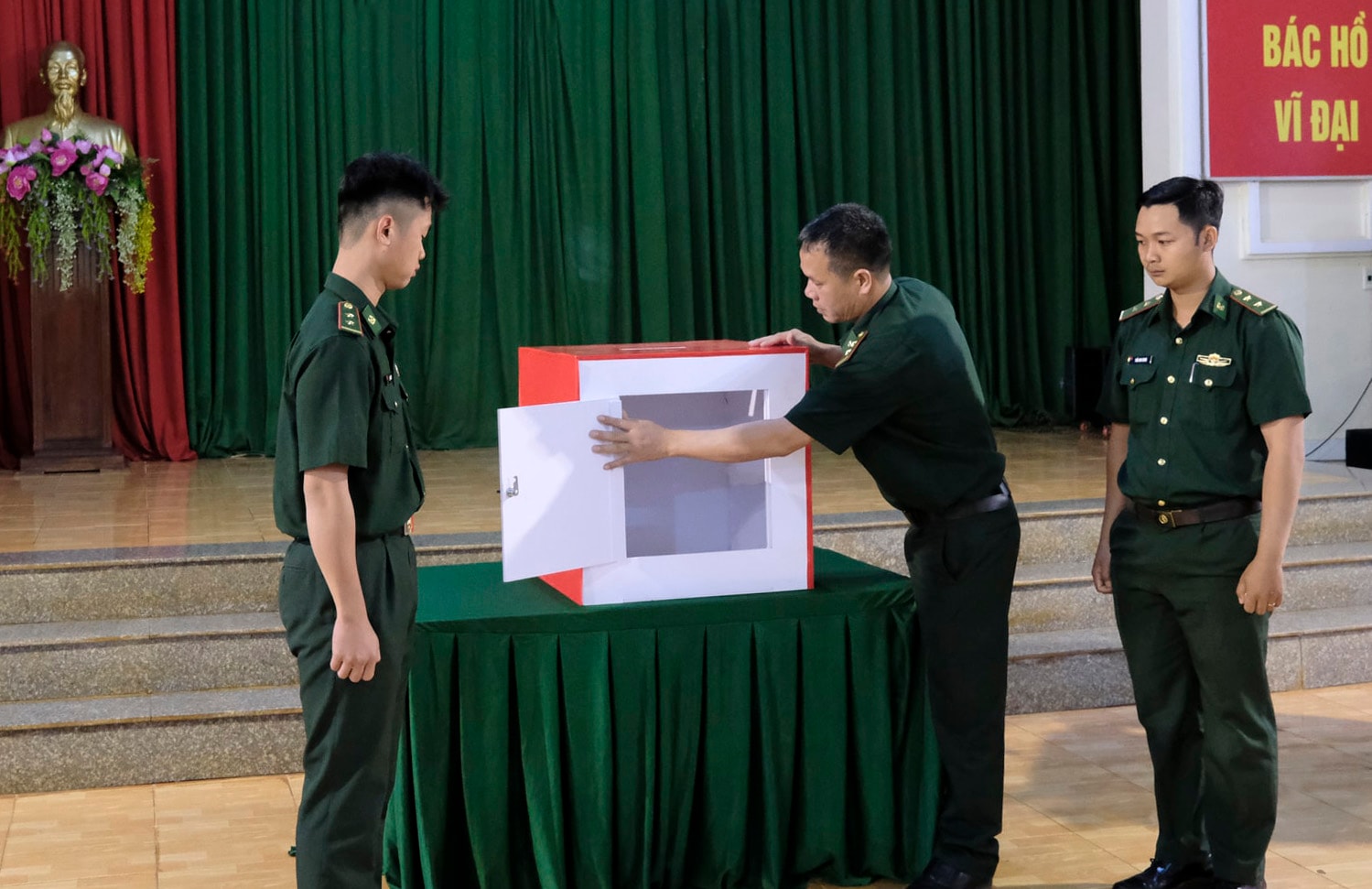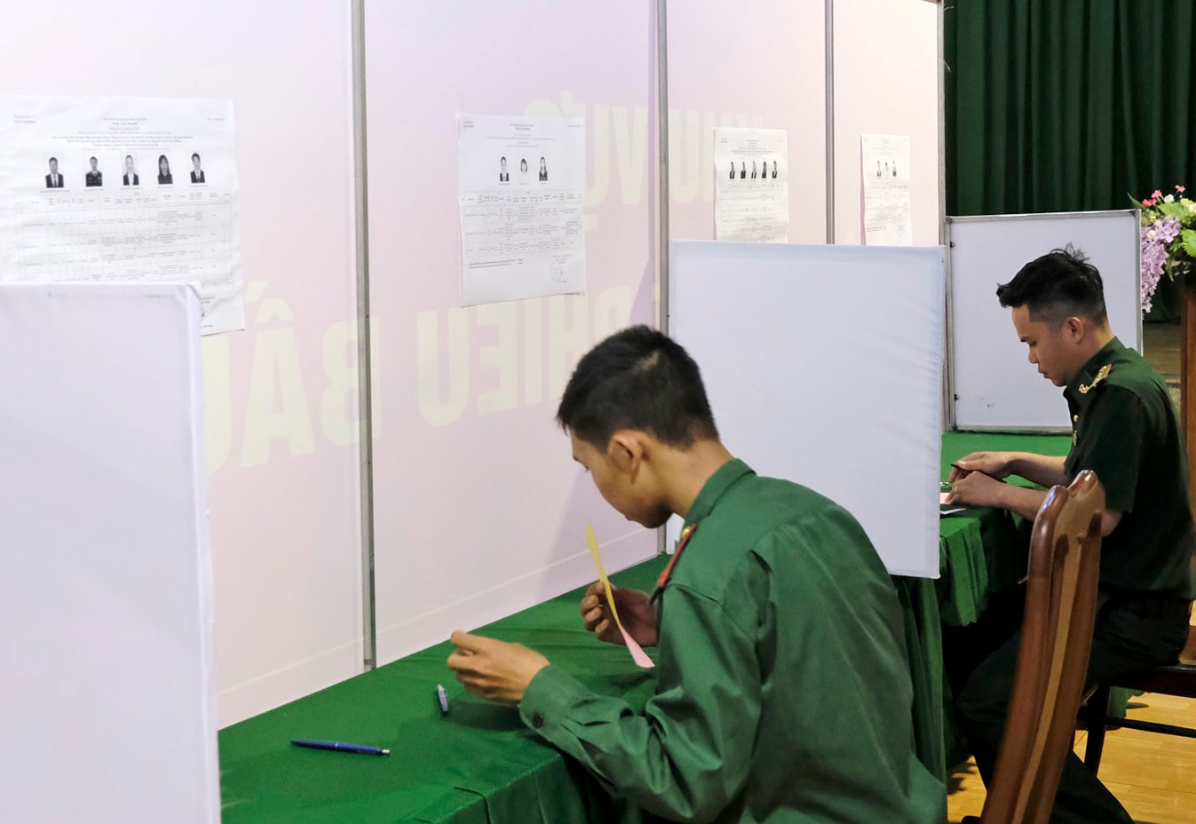 Ngay sau Lễ khai mạc, cử tri là cán bộ, chiến sĩ lực lượng vũ trang đang công tác tại đơn vị đã tiến hành bỏ phiếu.