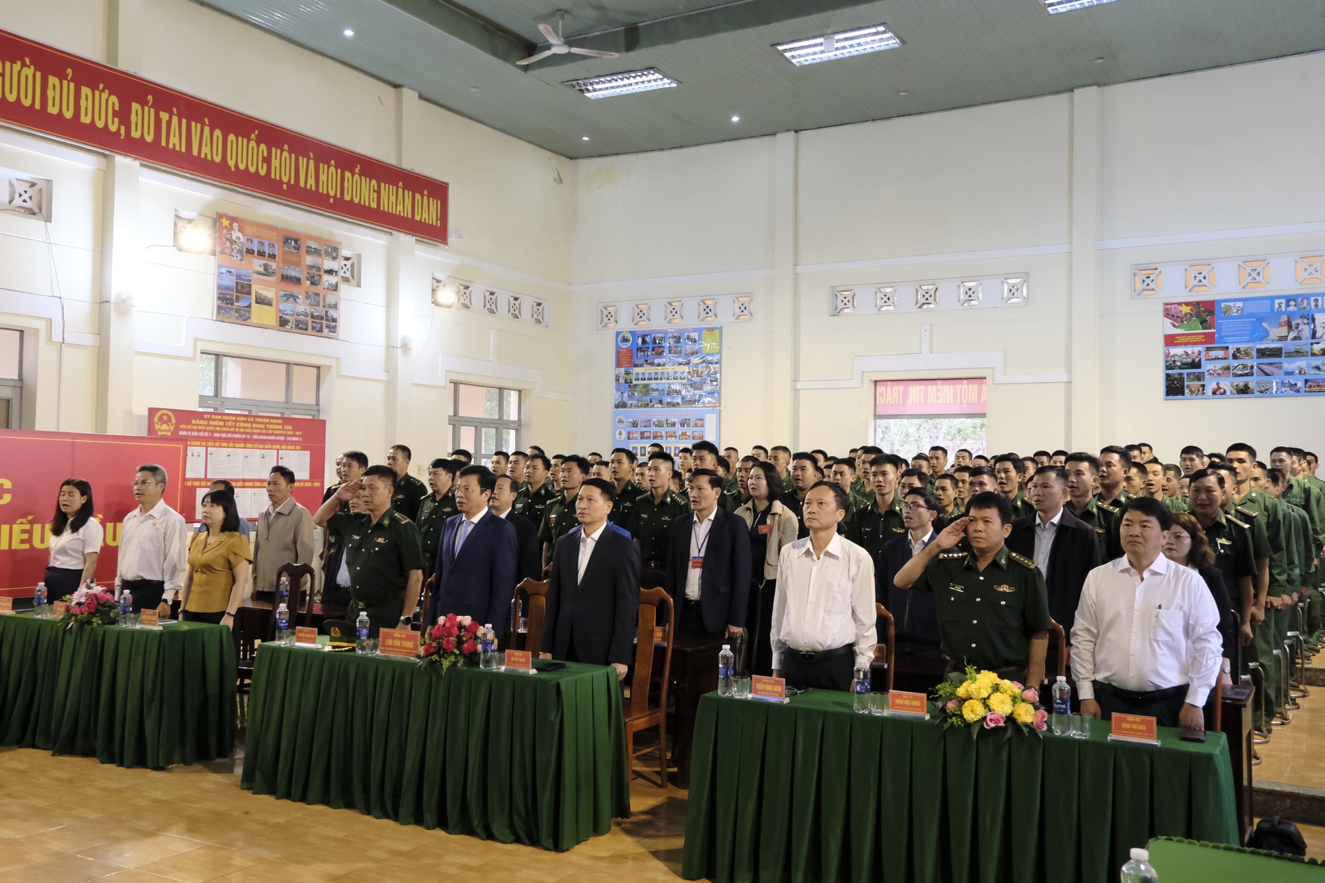 Quang cảnh Lễ khai mạc tại khu vực bỏ phiếu ở Tiểu đoàn Huấn luyện - Cơ động 1, xã Thuận Hạnh